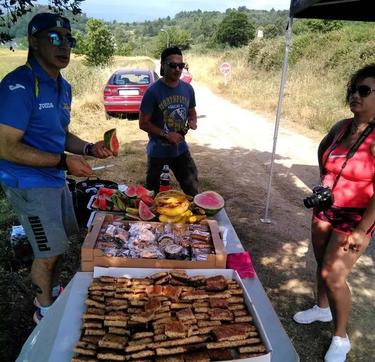 En la BTT, se realizaron tres avituallamientos uno de ellos en Roblido donde uno de los colaboradores asó en las brasas las «frebas» —filete de cerdo—. La bodega Alán del del Val fue el lugar elegido por la organización para el avituallamiento de la «andaina».