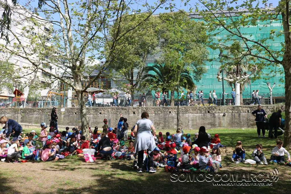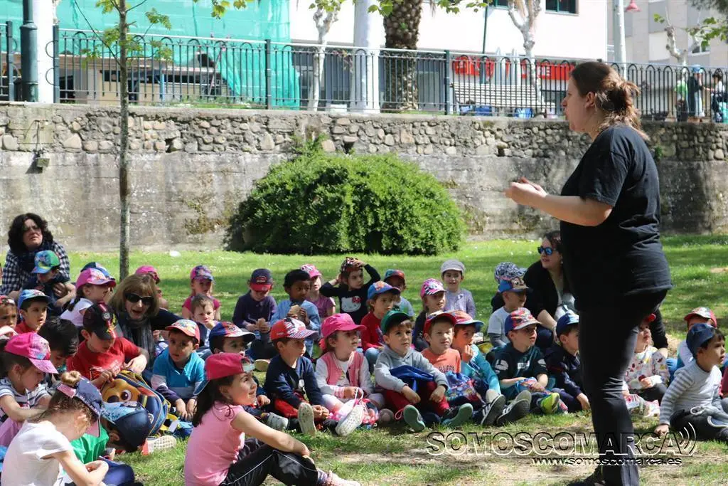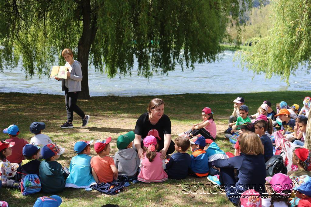 En el caso del Centro Plurilingüe Condesa Fenosa, fueron un centenar de niños los que acudieron a orillas del Sil a merendar a y conocer el cuento de Carauñas.