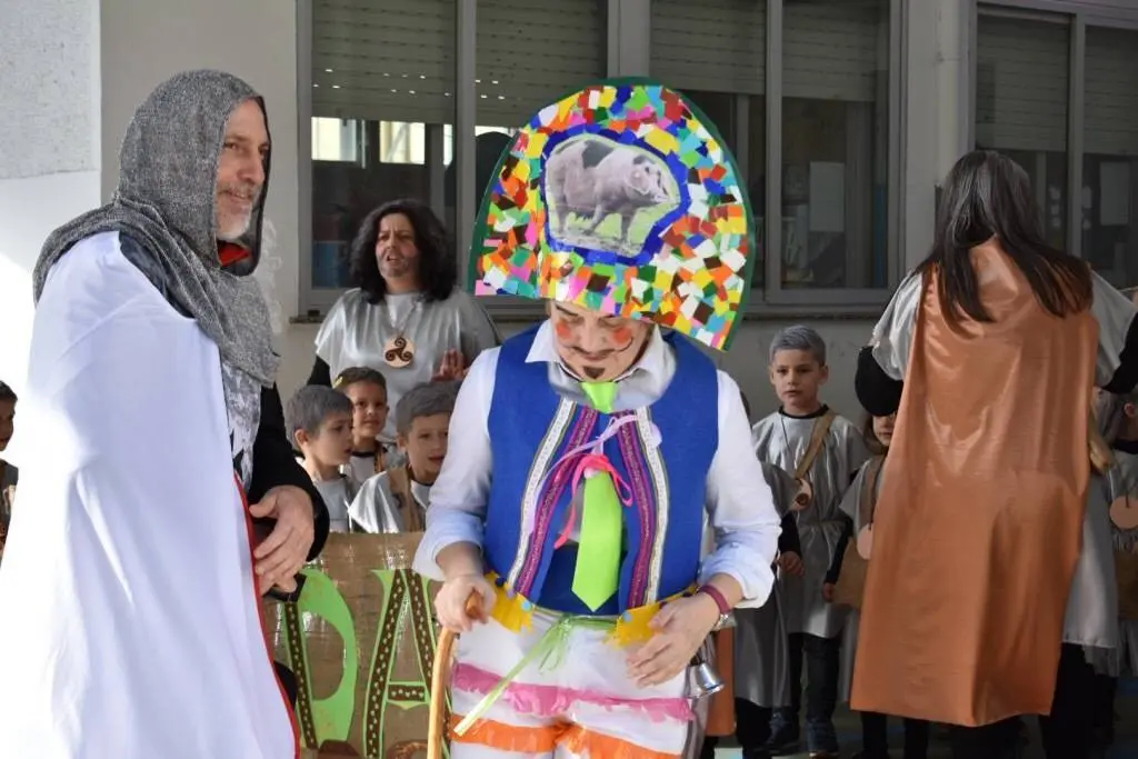 A tarde do venres previo ao entroido, no Colexio Condesa de Fenosa, está pensada para desfrutar. O pequenos —e non tan pequenos— puxéronse os disfraces confeccionados manualmente por eles mesmos para representar a temática en torno a que xiraba este xa tradicional desfile, A Cultura Galega.