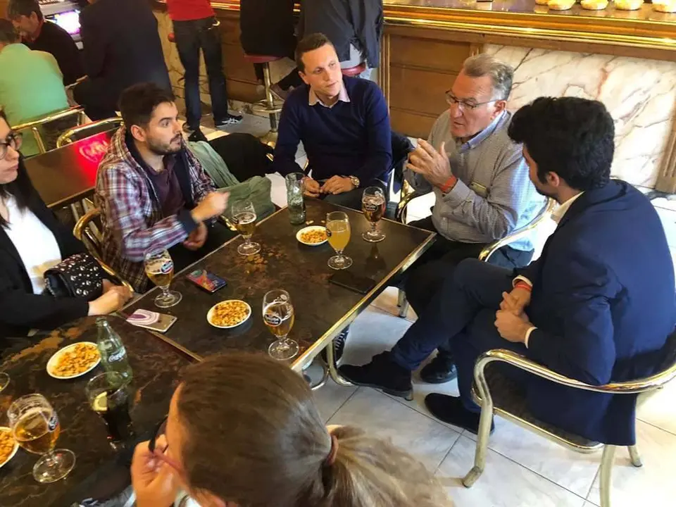 El candidato a la alcaldía de O Barco por el PSOE, Alfredo García, se fue de «cañas» con jóvenes del municipio para explicar su programa electoral. El lugar elegido fue una cafetería de la villa. Este acto de campaña partió de las Xuventudes Socialistas del municipio y contó con la presencia de secretario xeral de Galicia, Aitor Bouza.