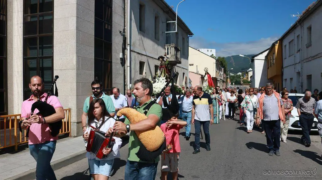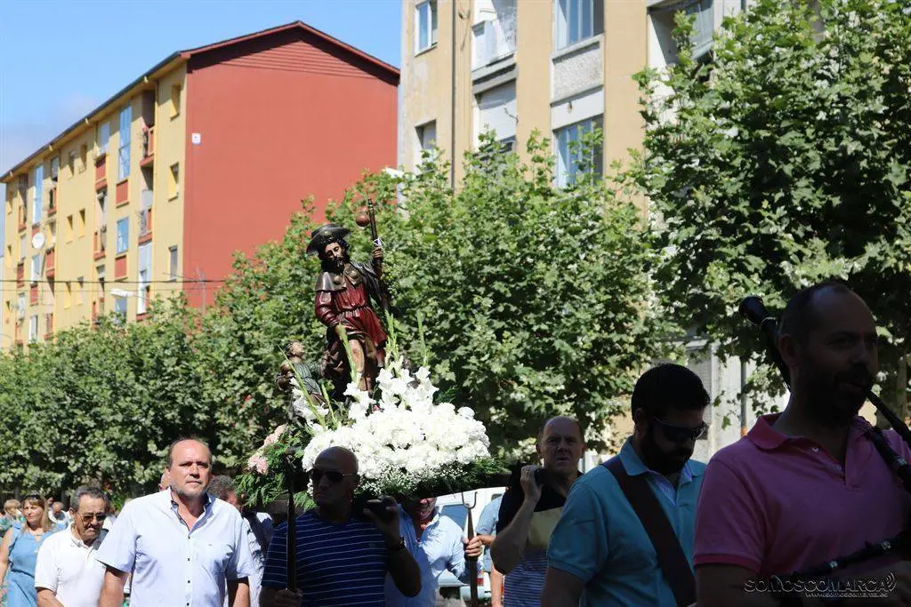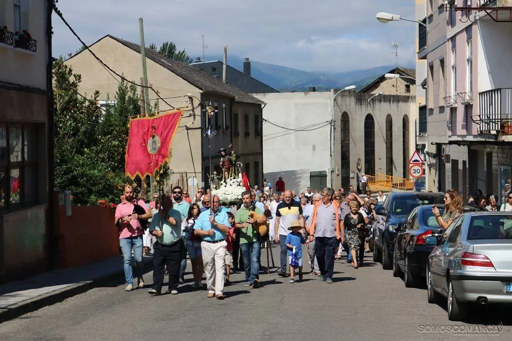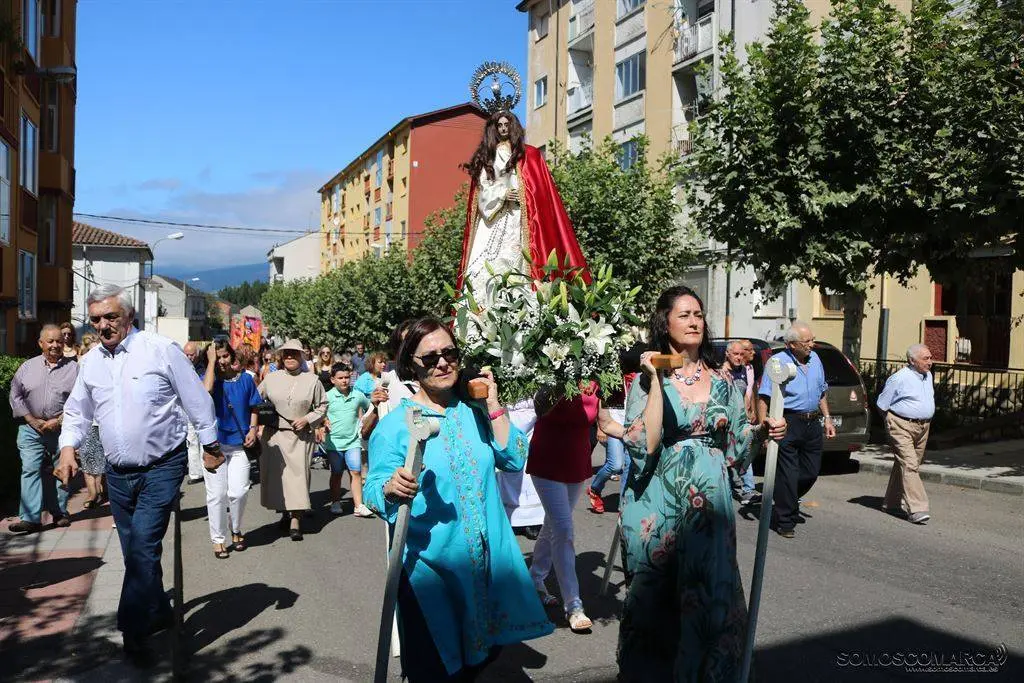 Detrás da imaxe de San Roque que portaba un gran acio de uvas brancas na man, á esquerda ía a da Nosa Señora da Asunción, cuxa onomástica celebrouse onte.