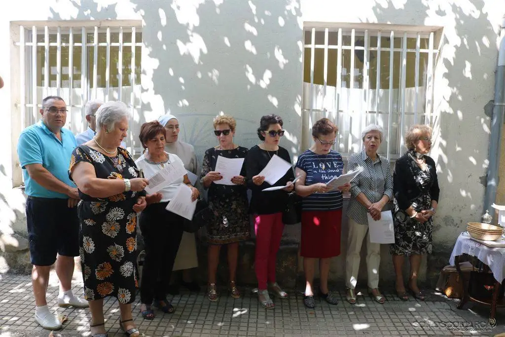 A partires das 12:30 horas, celebrábase a misa de campaña, cantada polo coro da igrexa de San Mauro, ofrecida a todos os defuntos e persoas enfermas do barrio. Presidiu a homilía Dani, un presbítero recén ordenado, acompañado do pai Aurelio, misioneiro en África.