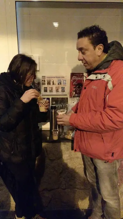 El notable incremento en el precio de esta edición – este año cuestan 3 euros más, un total de 18 euros la entrada – no ha afectado a la adquisición de entradas, ni al interés de la gente por asistir a esta fiesta gastronómica. Armados con termos de café y mucha paciencia, llegaban al teatro desafiando al frío de una mañana en la que incluso la nieve hizo acto de presencia.