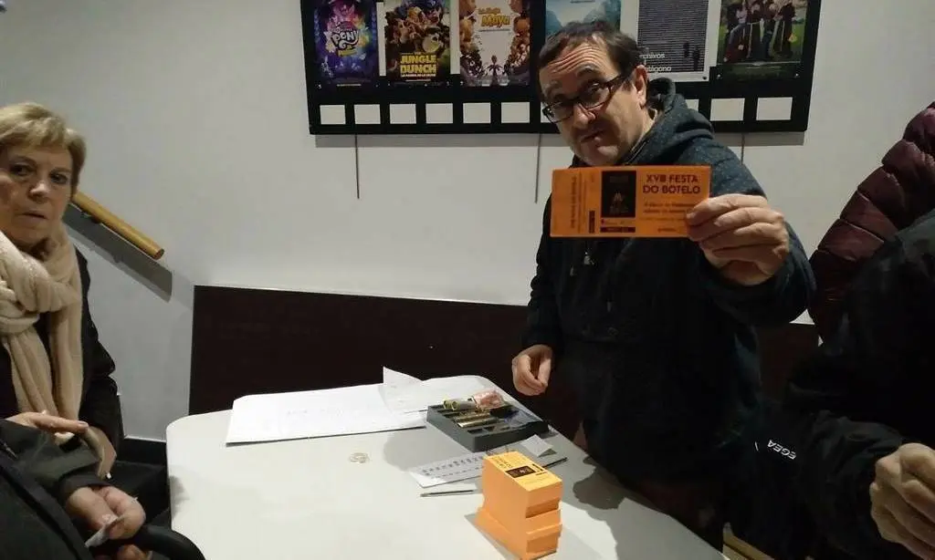 Una hora y media han estado a la venta las 1.150 entradas puestas a disposición para la XVIII edición de la Festa do Botelo de O Barco tiempo en el que se han adquirido en prácticamente su totalidad. A las 5:30 horas de hoy sábado día 13 de enero, se colocaba a la cola del Teatro Lauro Olmo la primera persona en hacerse con ellas. Una hora y media más tarde, ya eran más de veinte los interesados en adquirirlas, que retiraban un máximo de diez, establecido así por el Concello de O Barco. A esa hora, Jose María Rodríguez, presidente del Cine Club Groucho Marx y pregonero este año de la fiesta, abría las puertas del teatro para proyectar una película y amenizar la espera. Y tanto se amenizó, y tan buen ambiente hubo que, tal y como él cuenta, "va a ser mejor venir a la cola que a la propia fiesta".