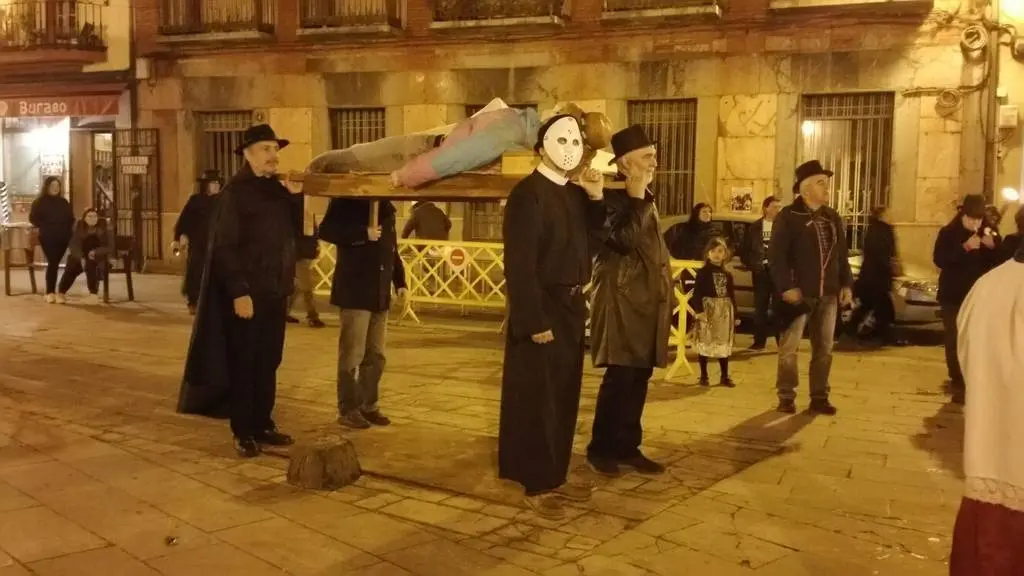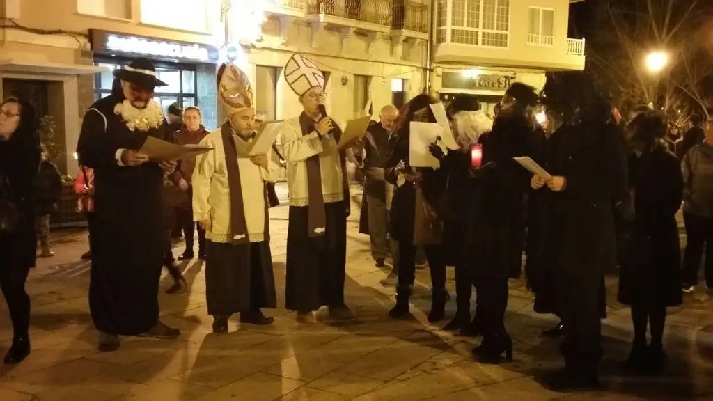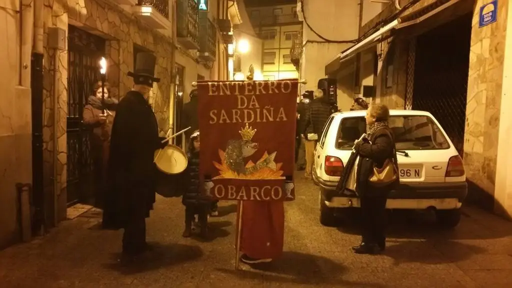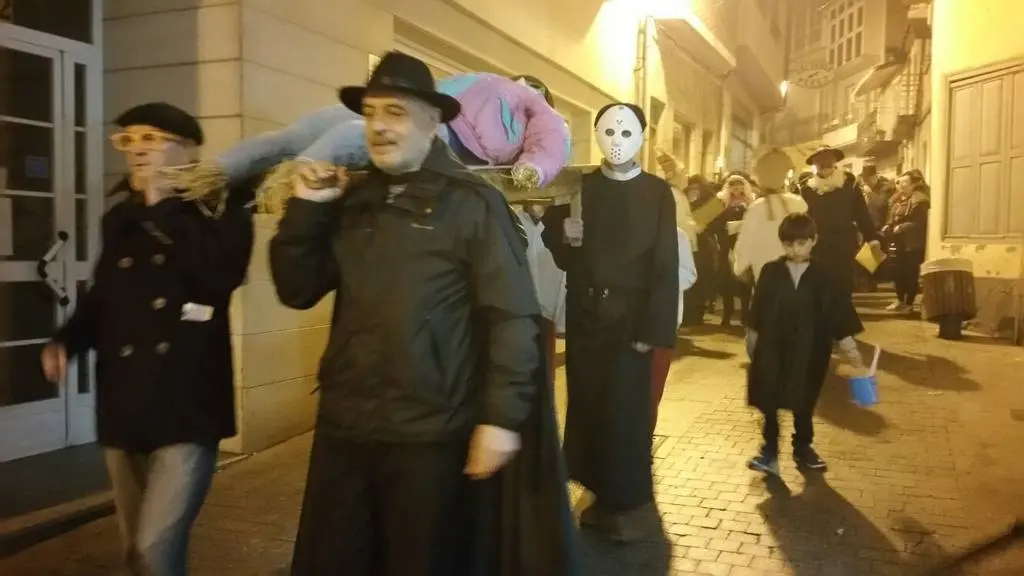 El casco vello de O Barco ha vuelto a convertirse en el escenario del cortejo fúnebre de la Sardina. En esta ocasión un entierro de la sardina totalmente atípico ya que la villa barquense volverá a revivirla en la tarde del domingo, cuando tenga lugar el desfile que en el día de ayer se canceló por la lluvia.