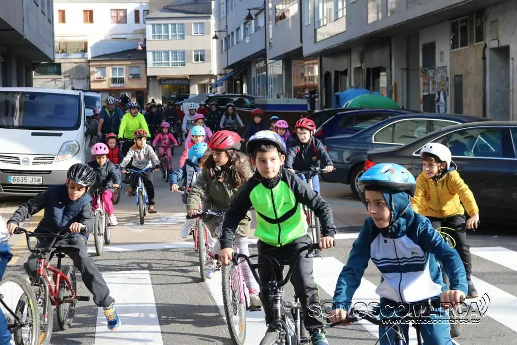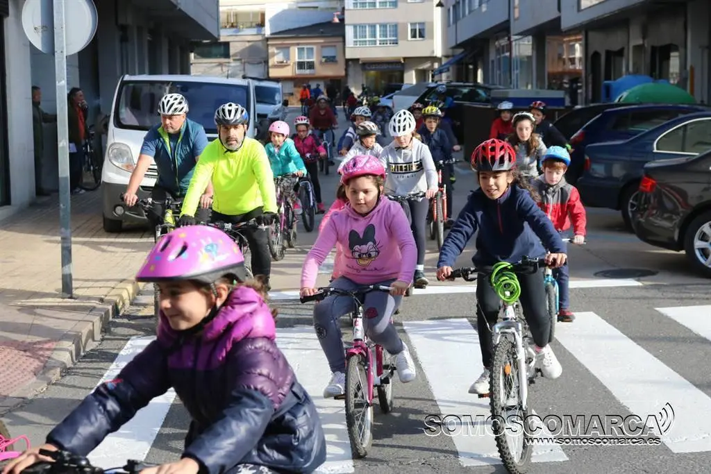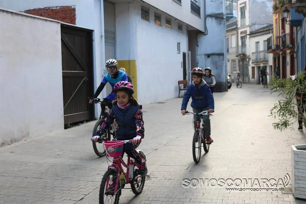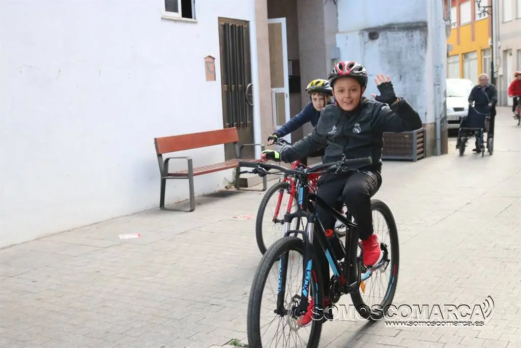 Alrededor de 70 alumnos del colegio de educación infantil y primaria Otero Pedrayo de Viloira, O Barco, se ponían en marcha esta mañana, desafiando al frío, para completar el recorrido de la II Marcha Cicloturista que organiza el centro. Gemma Delgado, profesora y coordinadora el evento, acompañaba a los pequeños en esta aventura por la margen derecha del río Sil, a su paso por el Casco Vello y O Malecón con destino al polígono industrial de A Raña. También acudían a la cita, además de padres y madres de alumnos, los agentes de la Policía Local de la villa, «algunos de ellos subidos en sus bicicletas dando ejemplo», un equipo de efectivos de Cruz Roja Valdeorras y los GES del Concello.