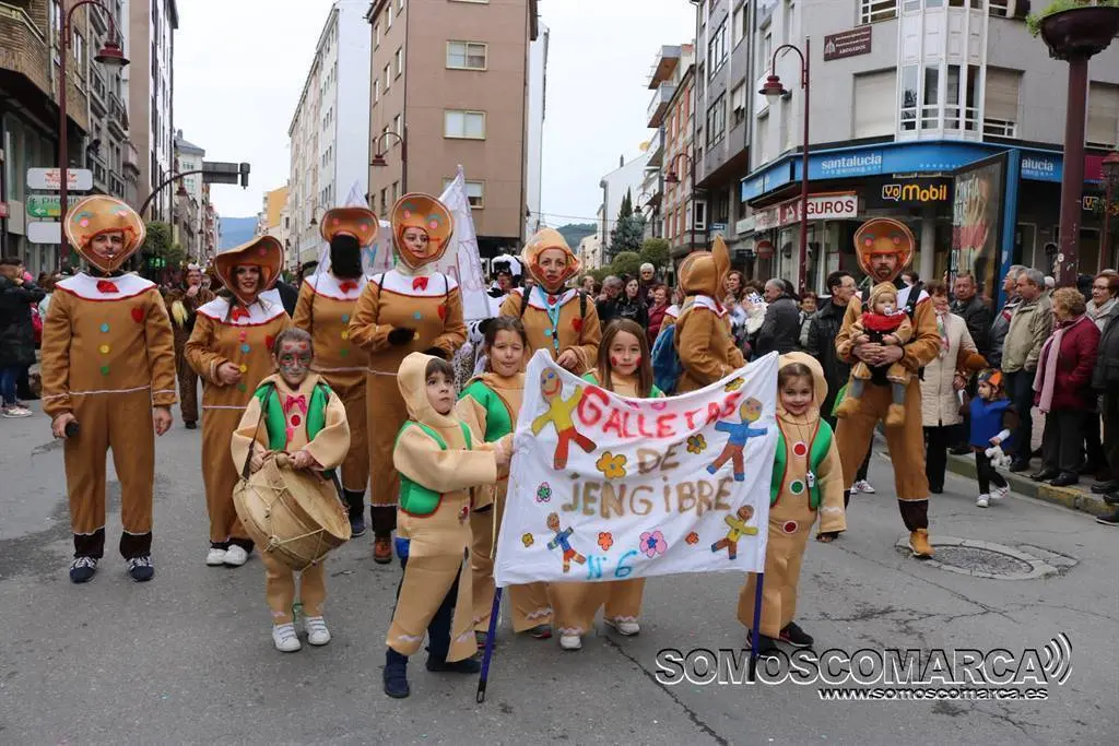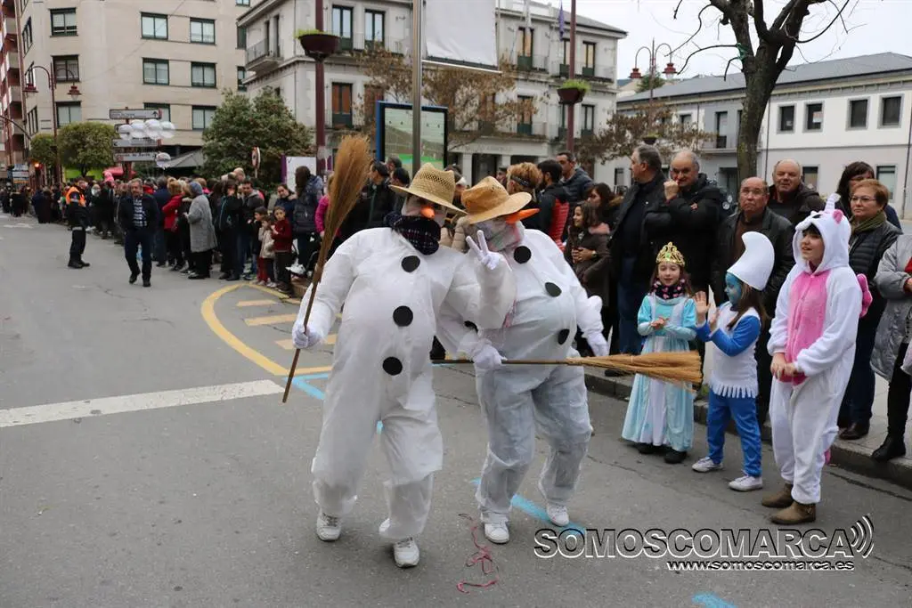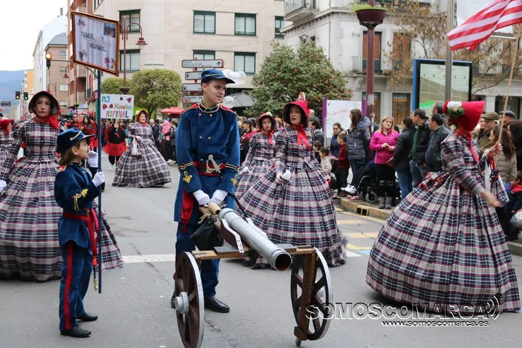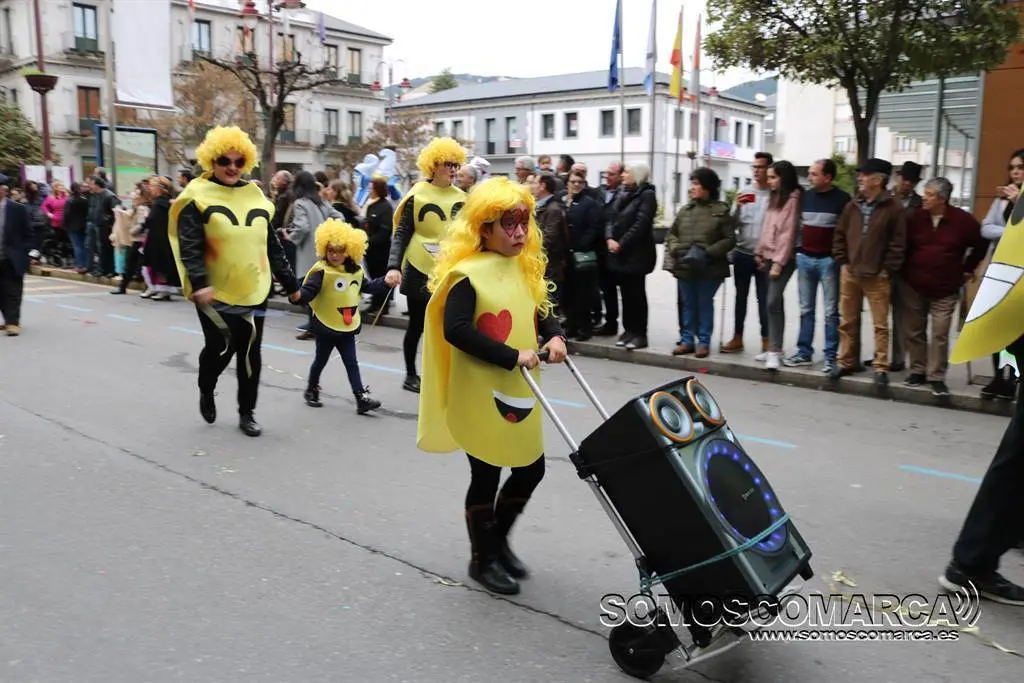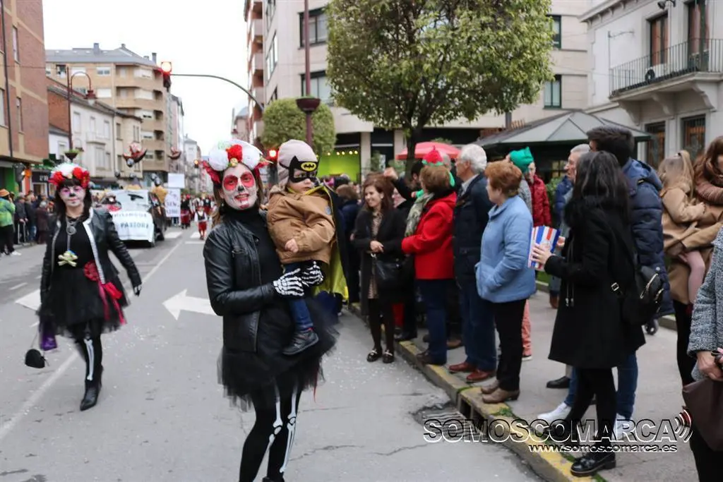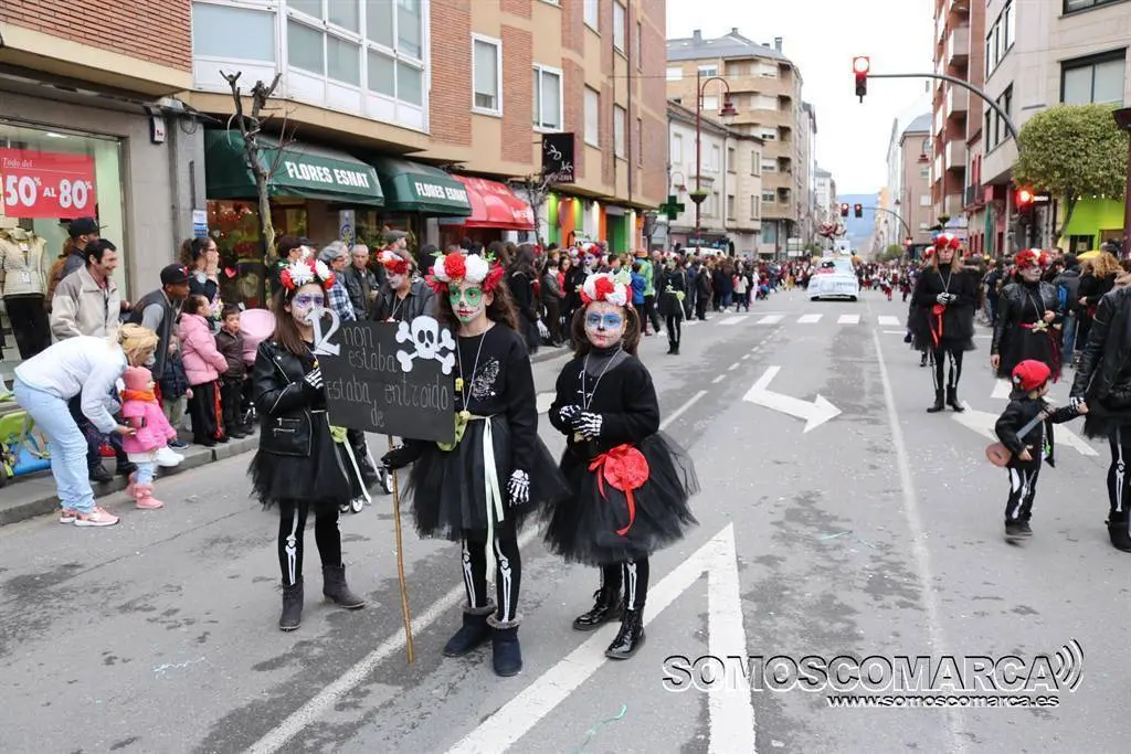 E así o fixeron cerca de vinte comparsas. O desfile abriuno unha muller vestida cunha bata, un sombreiro e acompañada por unha cabra e un can ataviados para a ocasión. Detrás dela unha charanga animaba o cotarro. Logo as Martas 13 e detrás delas os Comecocos. Seguiulle unha comparsa do medievo, e a esta unha galletas de xenxibre. Cans, Mariquitas, ratos con Ratibrón, emoticonos, súper heroes, bonecos de neve, algodón de azucre, e hasta os canons da guerra de secesión americana ou os San Fermíns con toros incluídos. A comparsa da Santa Purrela e os polos e pitas das Amas de Casa do Teixadal, Pero sen dúbida a mais numerosa e colorida foi a do circo do Ceip Julio Gurriarán na que ata estaban os pallasos da tele. A dos Piratas sen Caribe do Divina Pastora tamén estivo ben animada o igual que a dos Dálmatas de Córgomo. O desfile cerrárono Os Viticultores de Vilamartín que animaron cos seus bombos o desfile.