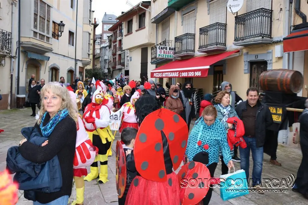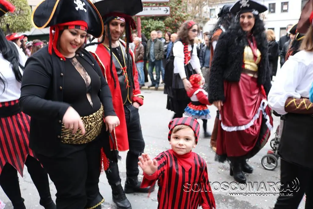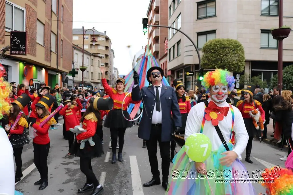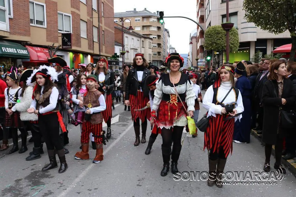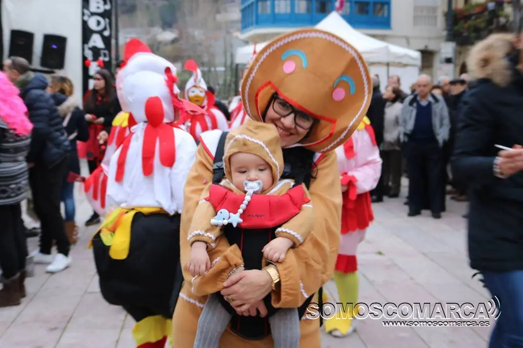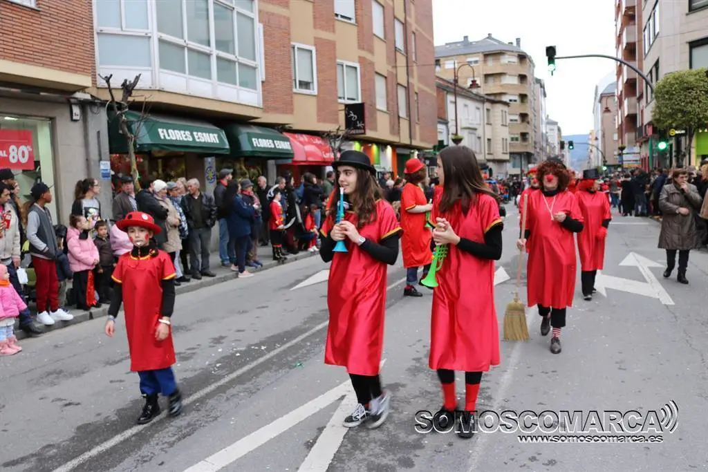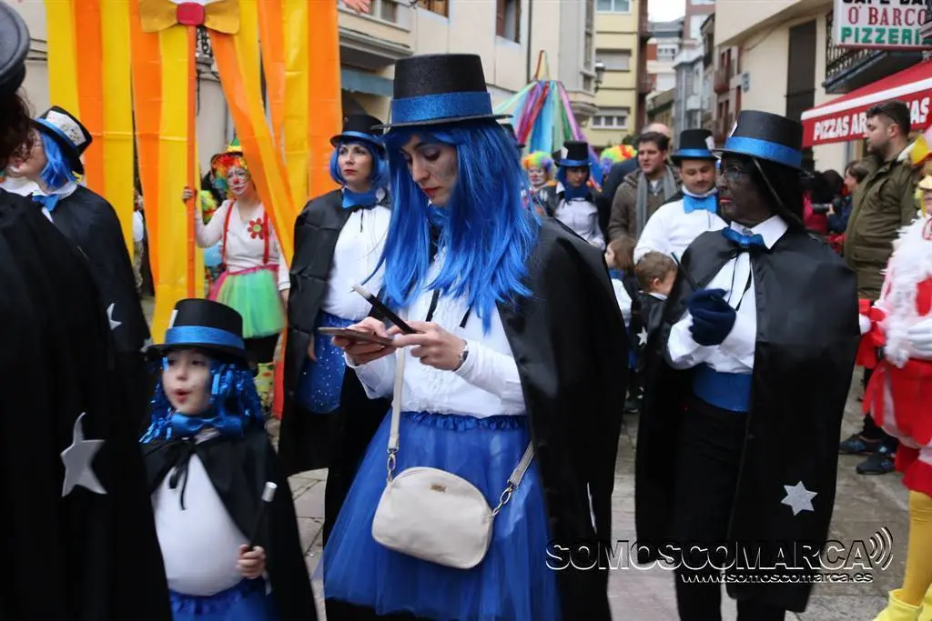 E así o fixeron cerca de vinte comparsas. O desfile abriuno unha muller vestida cunha bata, un sombreiro e acompañada por unha cabra e un can ataviados para a ocasión. Detrás dela unha charanga animaba o cotarro. Logo as Martas 13 e detrás delas os Comecocos. Seguiulle unha comparsa do medievo, e a esta unha galletas de xenxibre. Cans, Mariquitas, ratos con Ratibrón, emoticonos, súper heroes, bonecos de neve, algodón de azucre, e hasta os canons da guerra de secesión americana ou os San Fermíns con toros incluídos. A comparsa da Santa Purrela e os polos e pitas das Amas de Casa do Teixadal, Pero sen dúbida a mais numerosa e colorida foi a do circo do Ceip Julio Gurriarán na que ata estaban os pallasos da tele. A dos Piratas sen Caribe do Divina Pastora tamén estivo ben animada o igual que a dos Dálmatas de Córgomo. O desfile cerrárono Os Viticultores de Vilamartín que animaron cos seus bombos o desfile.