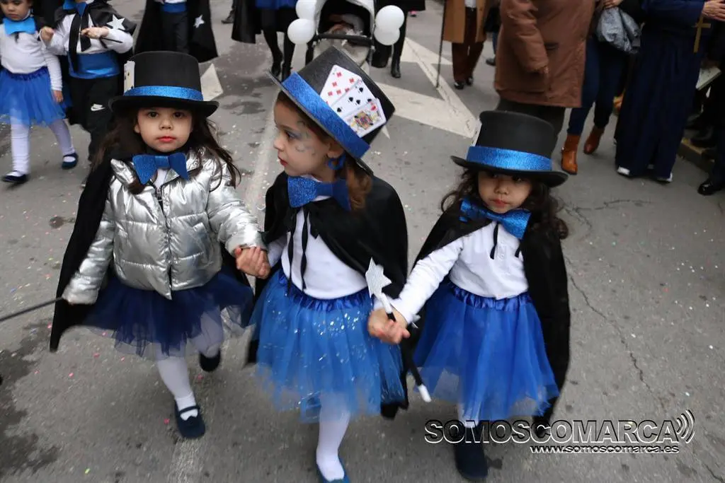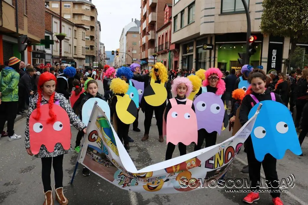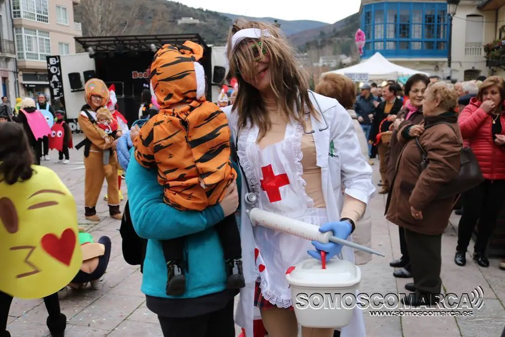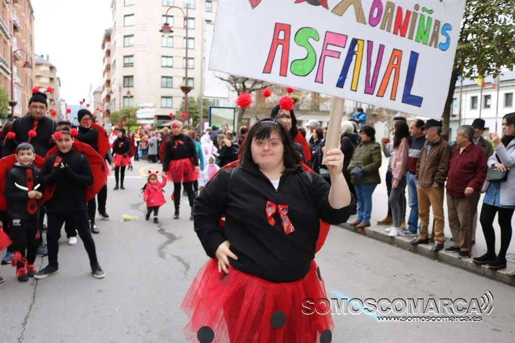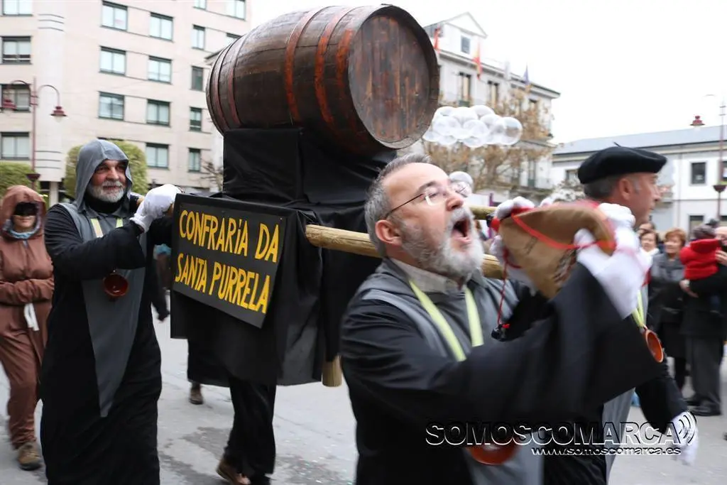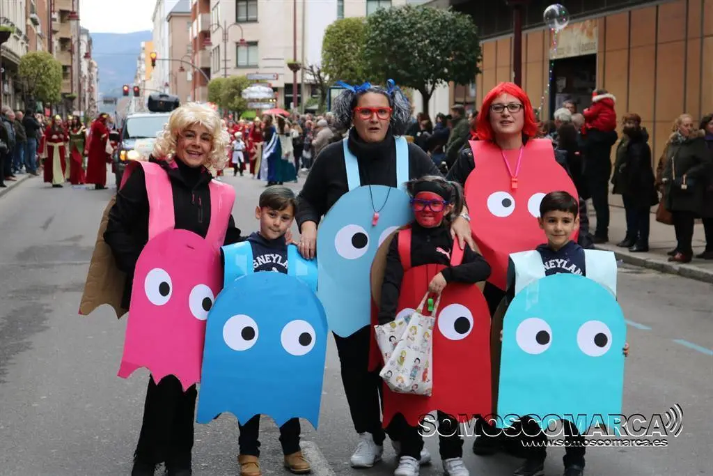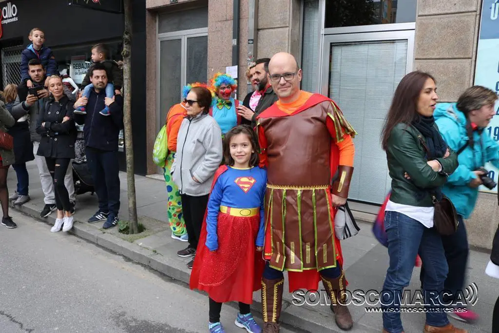 E así o fixeron cerca de vinte comparsas. O desfile abriuno unha muller vestida cunha bata, un sombreiro e acompañada por unha cabra e un can ataviados para a ocasión. Detrás dela unha charanga animaba o cotarro. Logo as Martas 13 e detrás delas os Comecocos. Seguiulle unha comparsa do medievo, e a esta unha galletas de xenxibre. Cans, Mariquitas, ratos con Ratibrón, emoticonos, súper heroes, bonecos de neve, algodón de azucre, e hasta os canons da guerra de secesión americana ou os San Fermíns con toros incluídos. A comparsa da Santa Purrela e os polos e pitas das Amas de Casa do Teixadal, Pero sen dúbida a mais numerosa e colorida foi a do circo do Ceip Julio Gurriarán na que ata estaban os pallasos da tele. A dos Piratas sen Caribe do Divina Pastora tamén estivo ben animada o igual que a dos Dálmatas de Córgomo. O desfile cerrárono Os Viticultores de Vilamartín que animaron cos seus bombos o desfile.