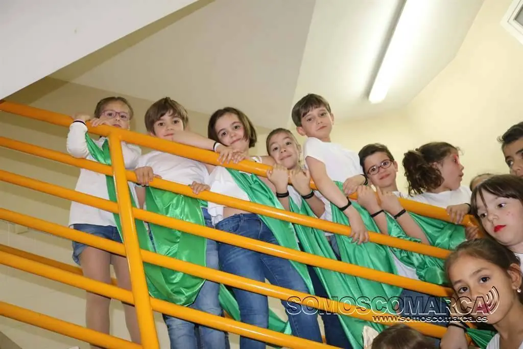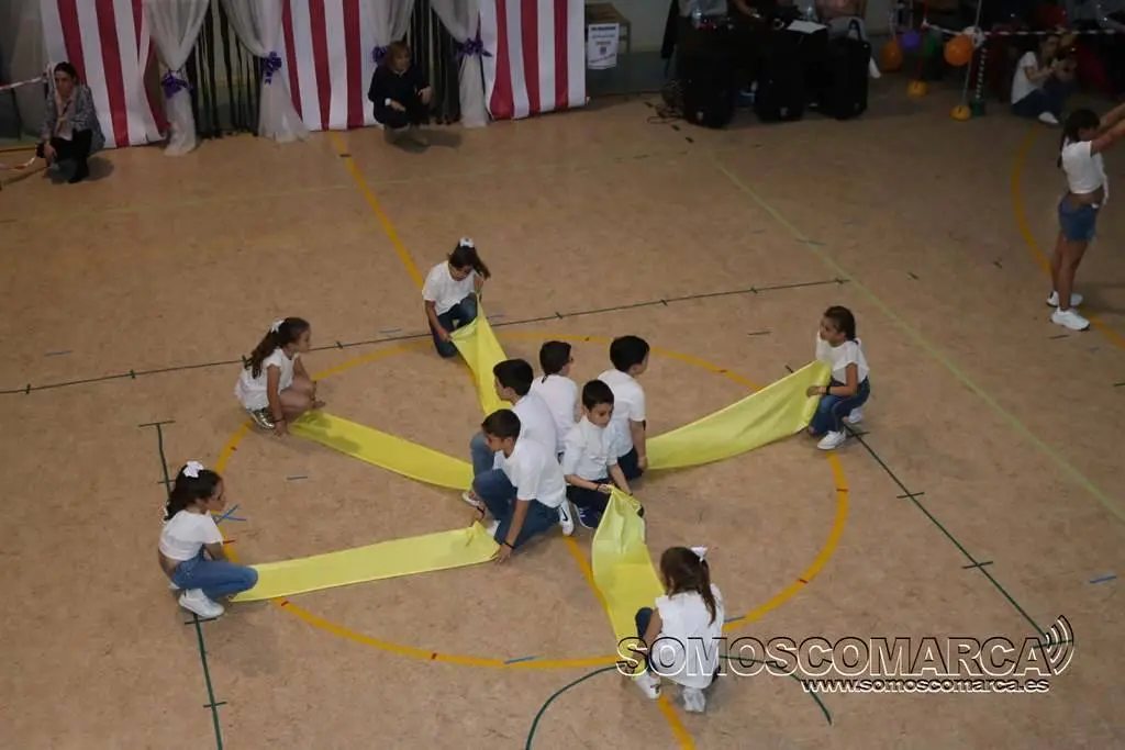Después llegaron los niños y niñas de primaria; 1º, 2º y 3º inundaron con cintas de colores el recinto y es que, el nombre de su actuación «Happy colours», lo decía todo. El alumnado de 4º, 5º y 6º hizo rememorar a los presentes la década de lo 70 y 80 con canciones y bailes de esa época.