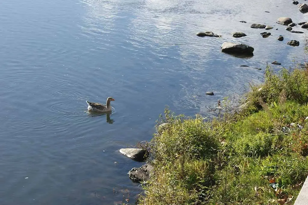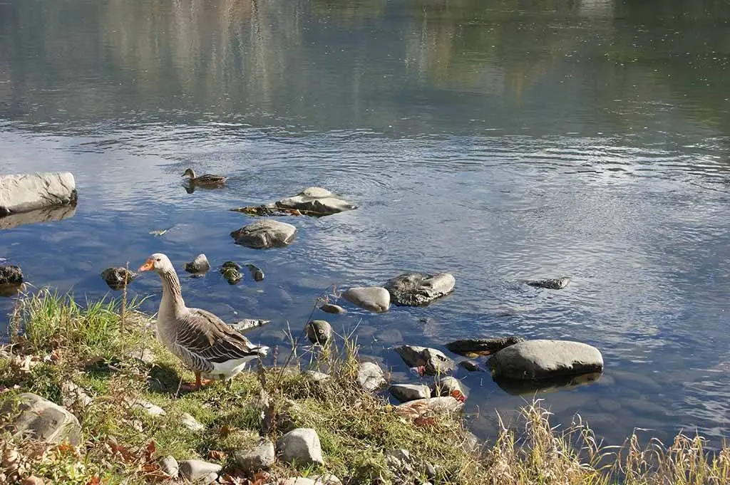 La supremacía en el tamaño, evidente por otra parte, implica una merma de rapidez o un exceso de torpeza, y no es extraño percatarse de la agilidad con la que otras aves logran hacerse con el alimento destinado a ella, lanzado desde cualquier punto de la orilla del río. Niños y mayores disfrutan con el espectáculo provocado. Pero es que los patos, han alcanzado un nivel experto en eso de alimentarse de migas de pan, trozos de galleta y panchitos varios.