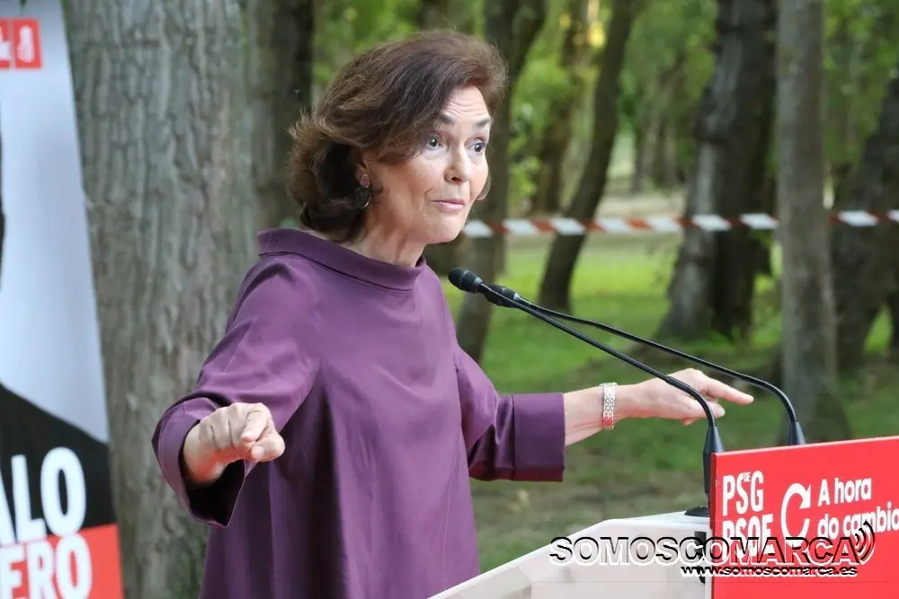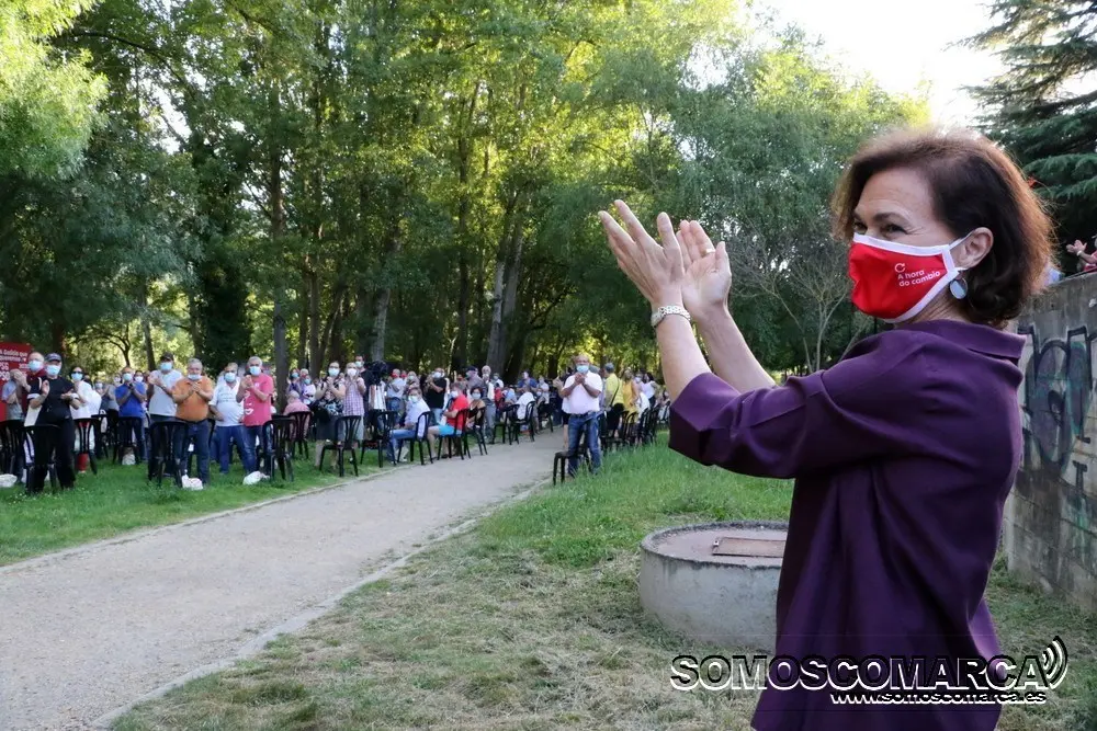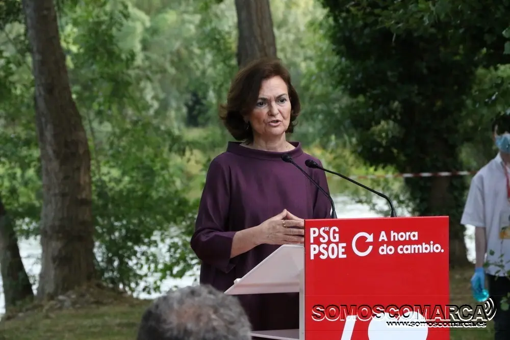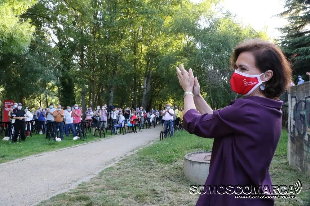 La vicepresindenta primera del Gobierno, Carmen Calvo, comenzó su discurso rendida a los encantos del Sil. El mundo rural, aseguró, «hay que revitalizarlo. Un mundo que se está muriendo y excluye a los jóvenes porque no hay capacidad de crecimiento. Esto se puede convertir en una gran ventaja del modelo de vida al que tenemos que ir tras la pandemia».