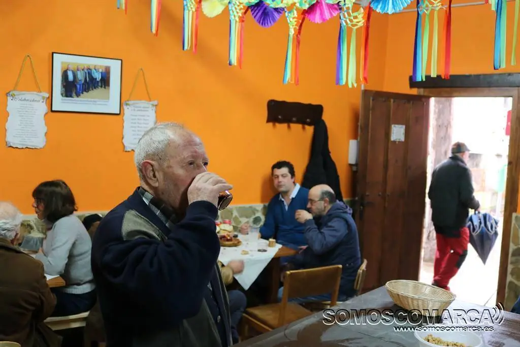 Hace no tantos años, los campos cercanos a la capilla donde se venera al santo, se poblaban de familias enteras que se reunían para comer. Hoy en día, tras la misa mayor, los asistentes degustan pulpo á feira acompañado de vino de la tierra y de gaiteiros que amenizan la jornada. Y si llueve, como hoy, se refugian en una pequeña bodega, levantada entre los vecinos, con materiales cedidos, donados, encontrados, que resguardan del frío a los fieles que continúan la tradición año tras año.