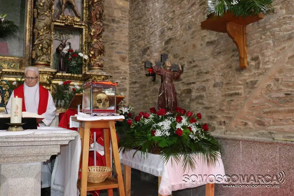 Y allí estaban, los vecinos, los miembros de las cofradías, los visitantes de otras partes de la comarca, y del resto de Galicia, incluso de fuera de la comunidad, esperando la oportunidad de verle y besar su calavera, para remediar los males de cabeza. O para pasar por debajo de sus arcas hasta tres veces, como manda una tradición más cercana en el tiempo, si quieres pedir un favor al santo.