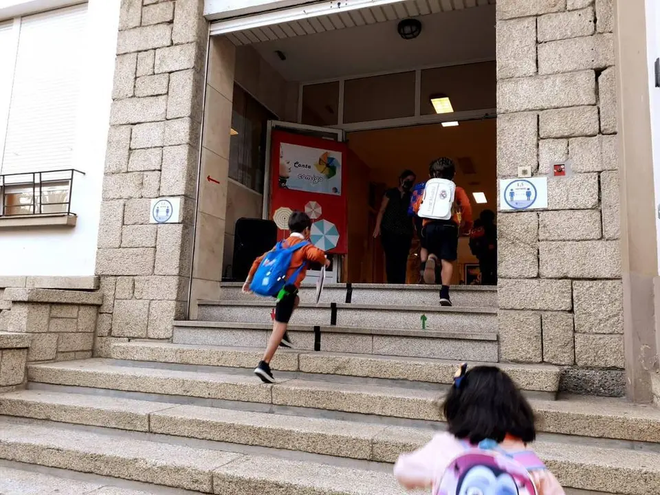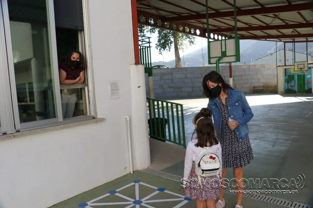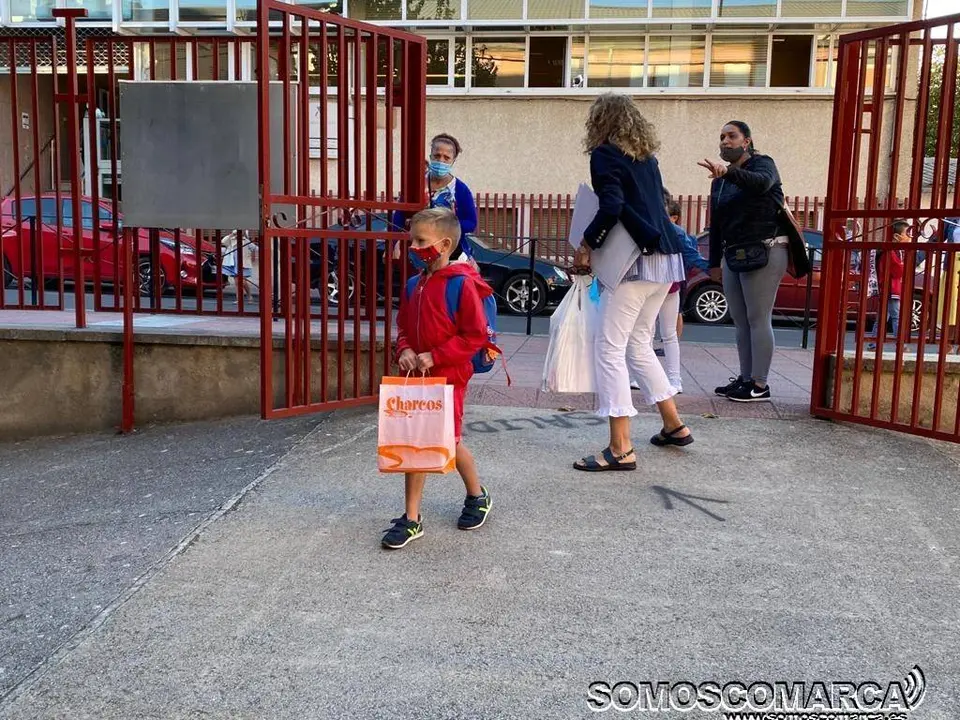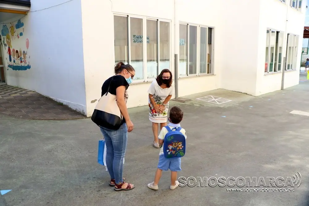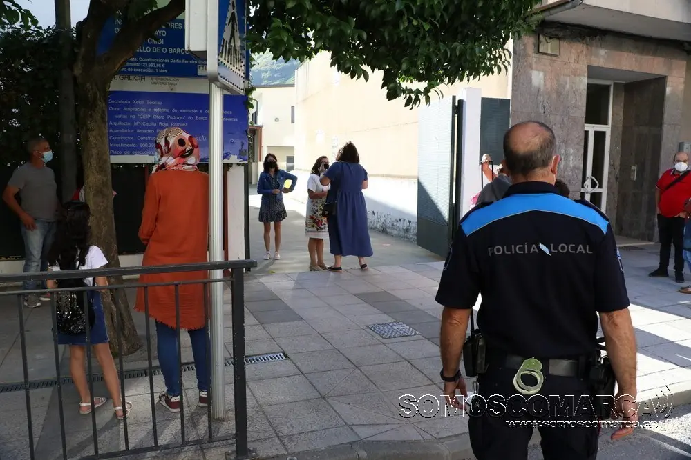 Esta mañana las entradas de los centros de O Barco y A Rúa se llenaban de niños ilusionados por volver casi medio año después al cole