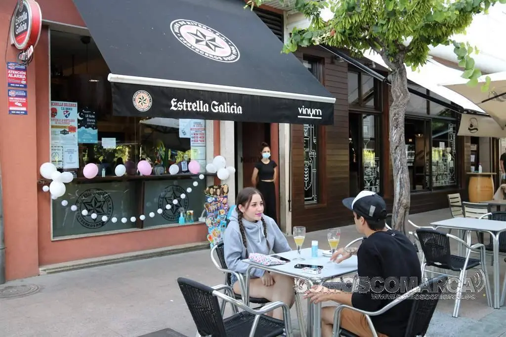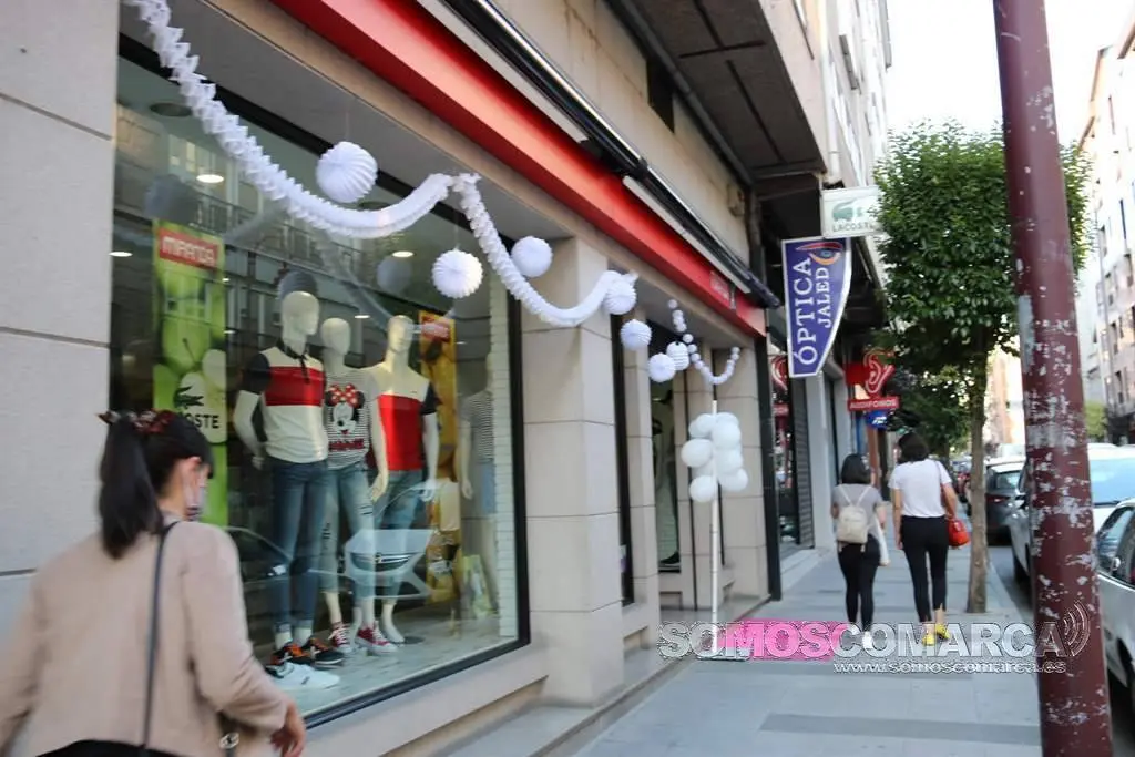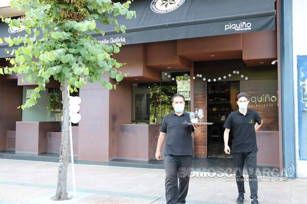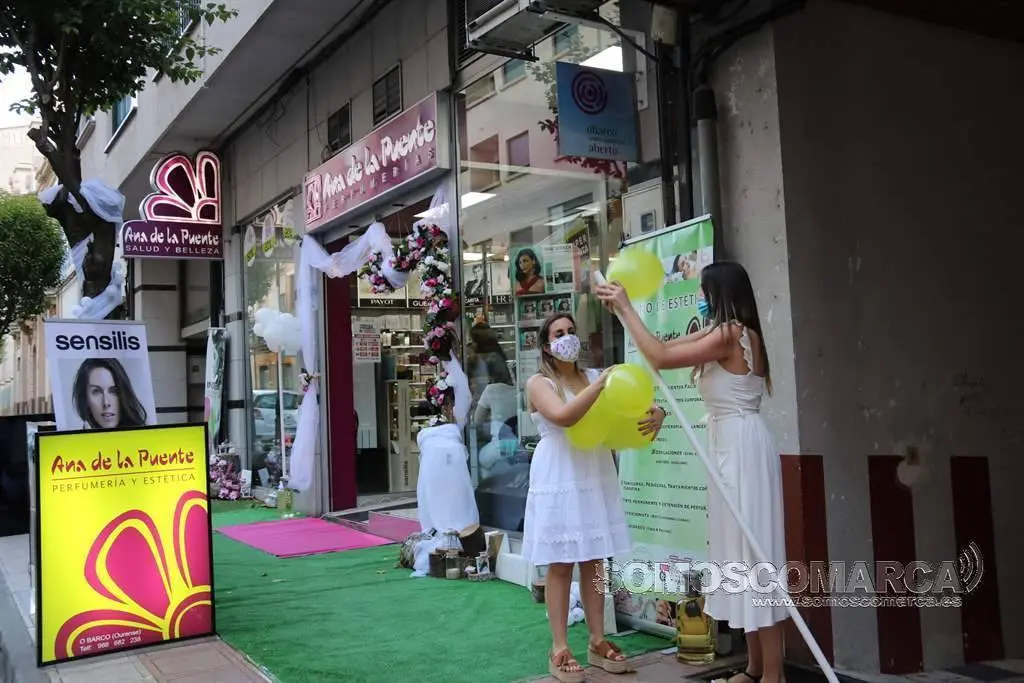 El buen tiempo y las altas temperaturas ayudaron en que las calles y sobre todo terrazas y establecimientos comerciales se llenaran hasta el aforo permitido. Una alfombra rosa a la puerta de cada tienda y globos blancos invitaban a entrar en los 26 comercios que participaron en esta primera iniciativa de la Asociación Centro Comercial Aberto que retoma así, su actividad tras el confinamiento.