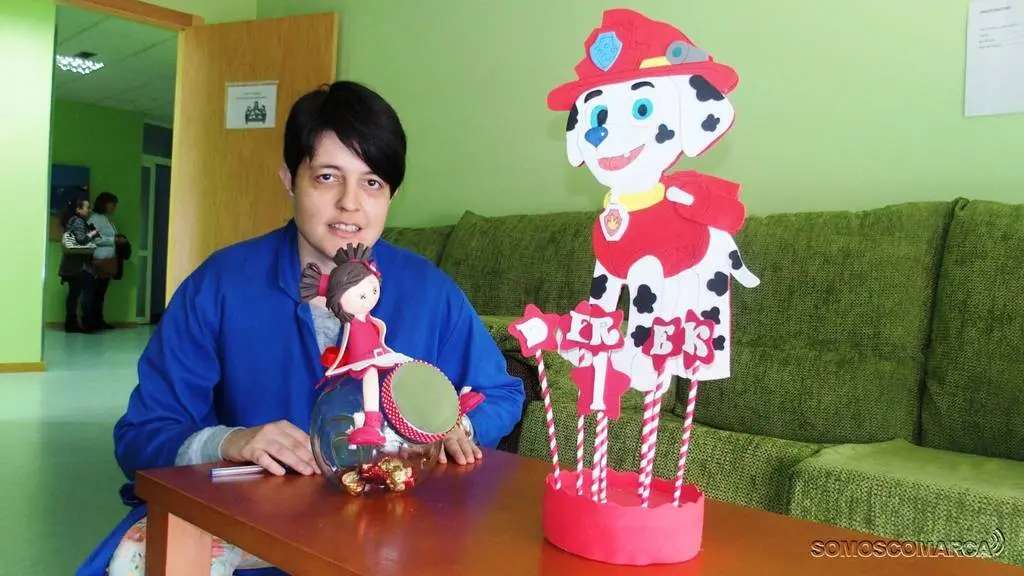 Uno de los trabajos que los usuarios de Asfaval realizan con mayor ilusión es su aportación a los regalos que la Xunta entrega en el cheque bebé. Un muñeco de bebe a bordo que realizan de forma manual. “Hicimos 300 y vamos a entregar ahora otros 300”, señaló y destacó la importancia que tienen para los usuarios sentirse útiles y realizar este trabajo que además se distribuye a todos los recién nacidos.