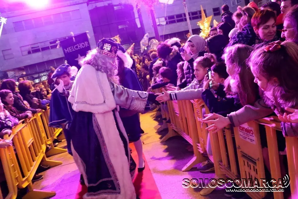 Este año la puntualidad volvió a un desfile que recorrió la principal arteria de la localidad, y lo hicieron rodeados de miles de personas, entre ellas muchos niños cargados con bolsas para poder atrapar los caramelos que lanzaban o bien los pajes reales o los propios reyes que iban en este orden, en primer lugar Melchor abriendo el desfile, después Gaspar y por último Baltasar.