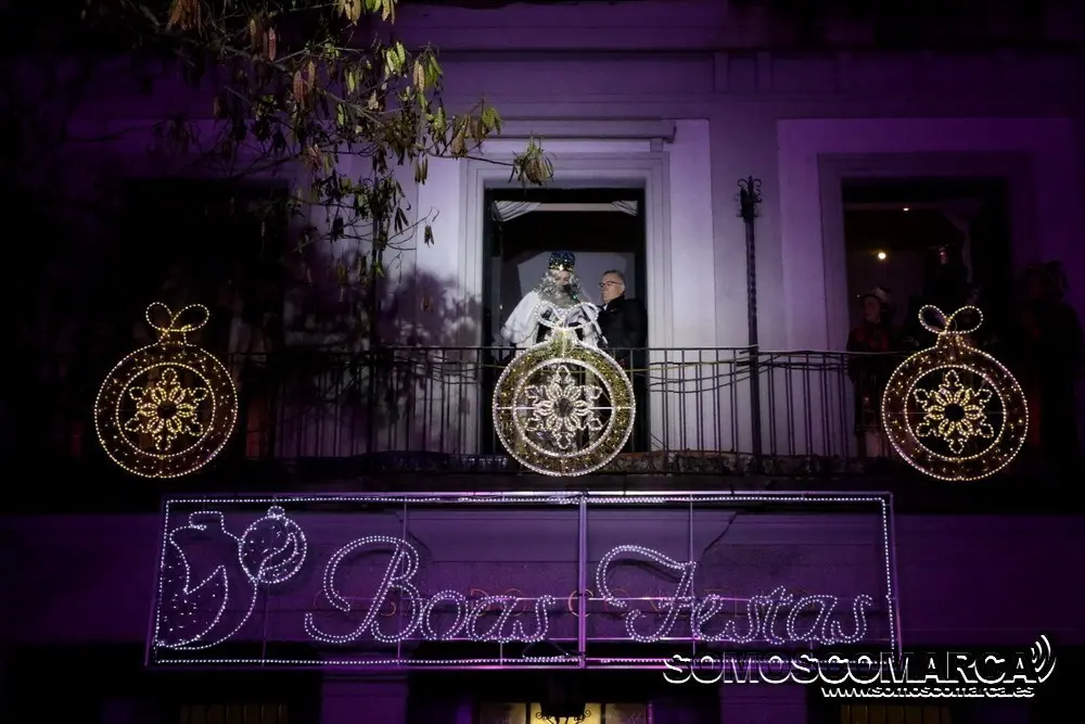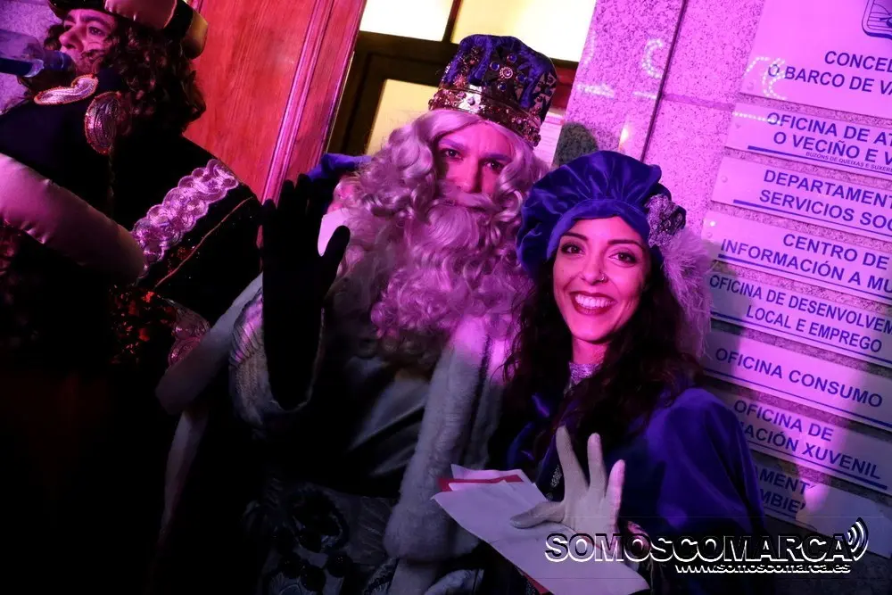 El recorrido se terminó al llegar a la Praza do Concello barquense, allí fueron recibidos en primera instancia por el alcalde Alfredo García, posteriormente saludaron a los niños presentes frente a la Casa Consistorial antes de dar su ya tradicional discurso desde el balcón del Concello Vello.