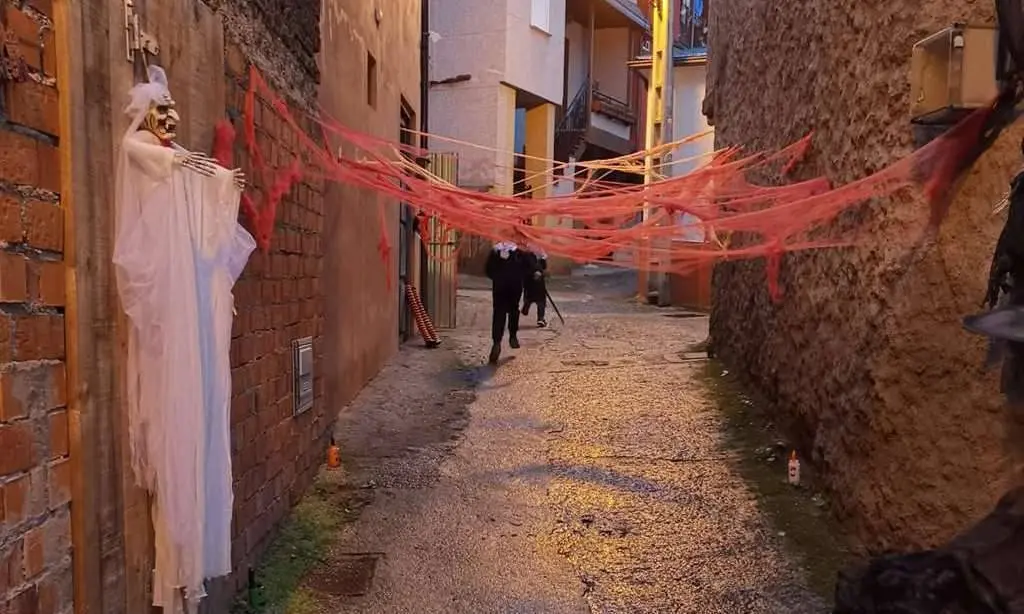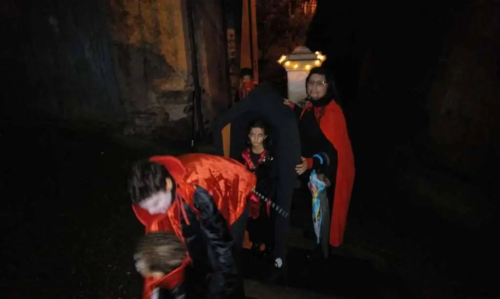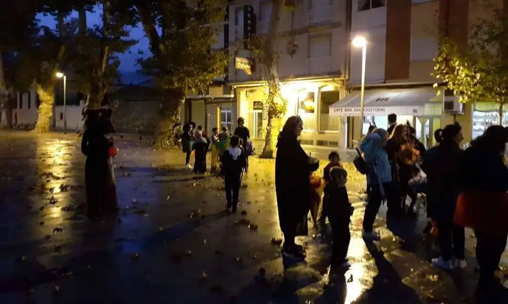 Desde allí por la calle Iglesia de Viloira se dirigieron hacia la calle Portela para bajar de nuevo por la rúa Cimadevilla —en la confluencia de Portela y Cimadevilla de nuevo otro punto de «lambonadas»—. Al llegar a la plaza de Viloira en el fondo oeste se hallaba otro grupo de padres aguardando a los niños que luego se dirigieron hacia la calle Elena Quiroga, donde al lado de la casa de los camineros estaba situado otro punto de dulces. No podía faltar la visita terrorífica a las inmediaciones del cementerio para acabar en un local cedido por el establecimiento Hostelero Casa Ignacio donde les aguardó una gran merendola.