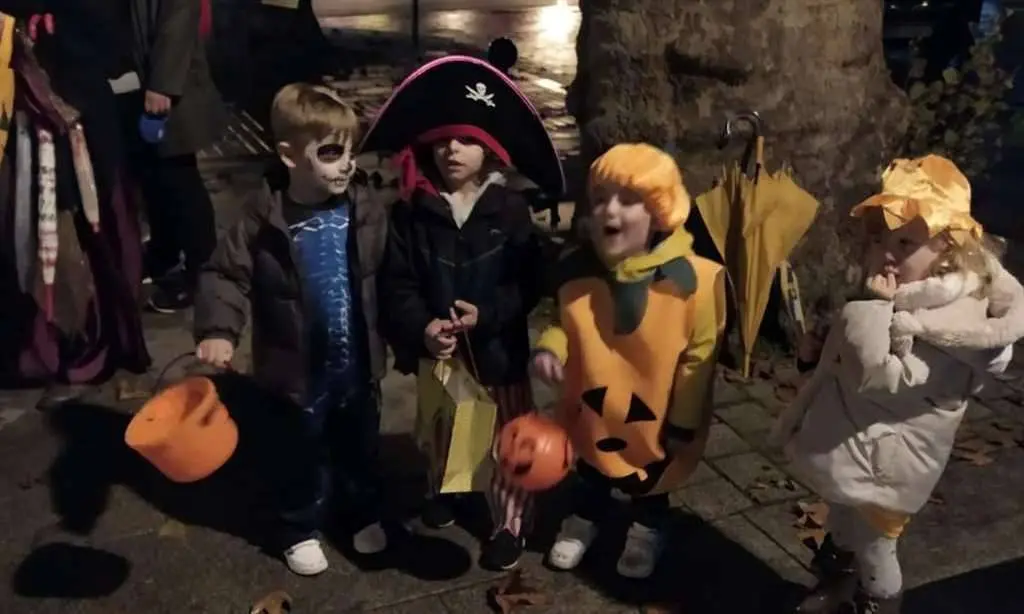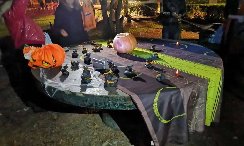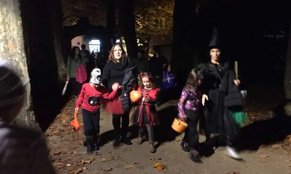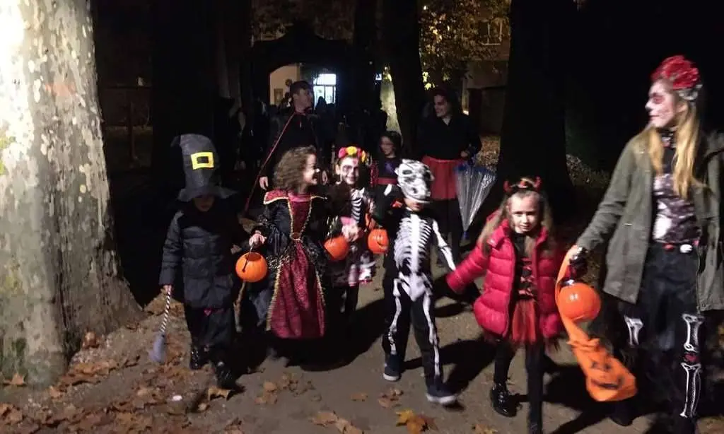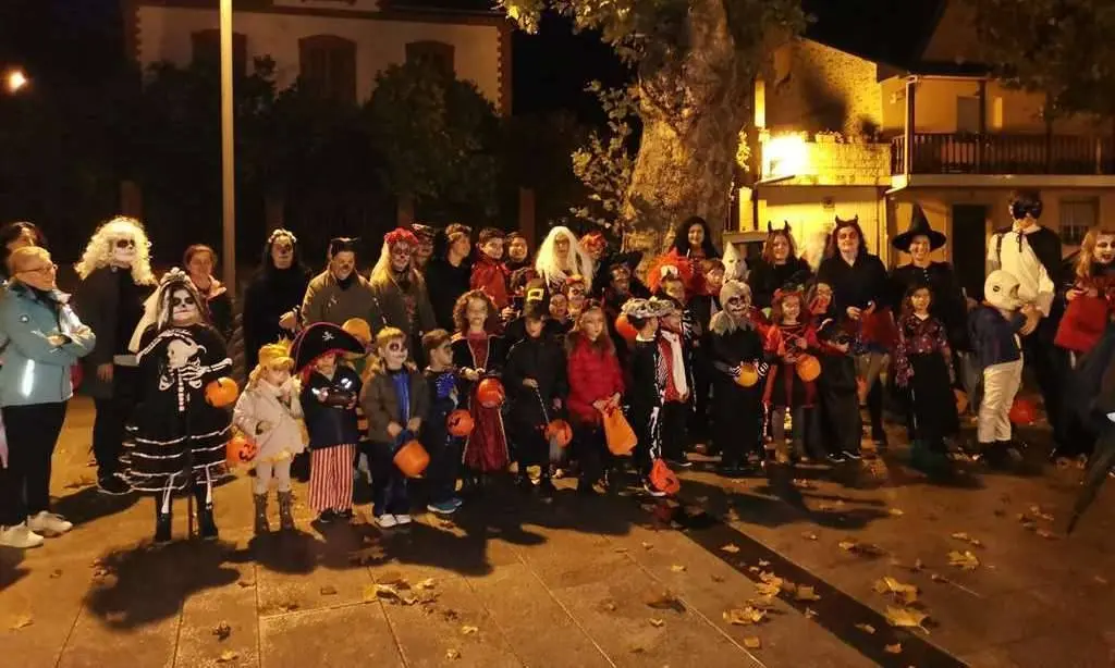 Partieron de los jardines de la Casa Grande de Viloira donde una mesa «aquelárrica» con calabazas iluminadas les aguardaba. Salieron por el portón que da a la plaza y se dirigieron hacia la iglesia donde se hallaba un nuevo punto de golosinas.