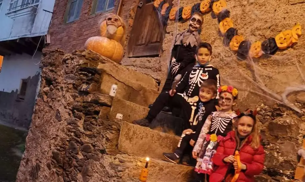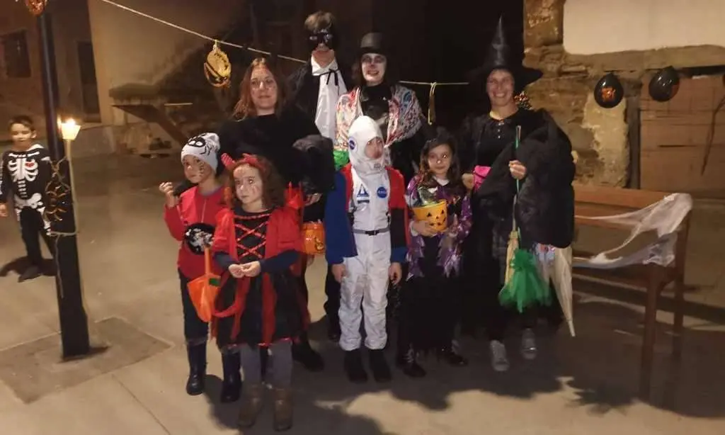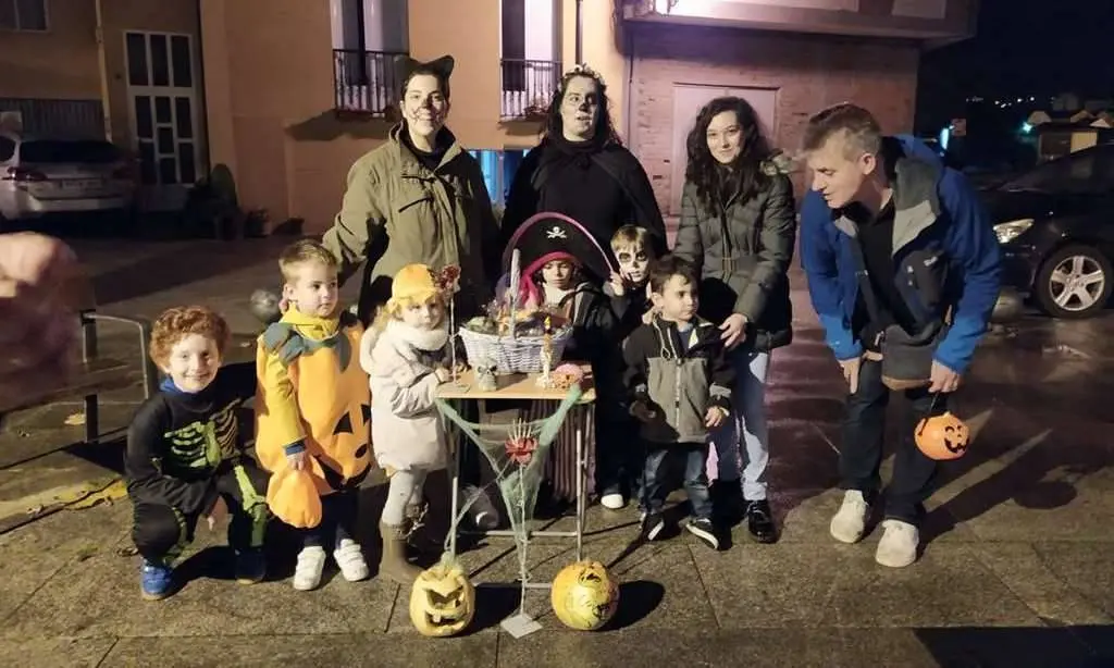 Los niños y niñas de Viloira disfrutaron ayer de una singular tarde de truco o trato «terrorífico». Un grupo integrado por unas 70 personas recorrió las calles de Viloira en busca de dulces y emociones.