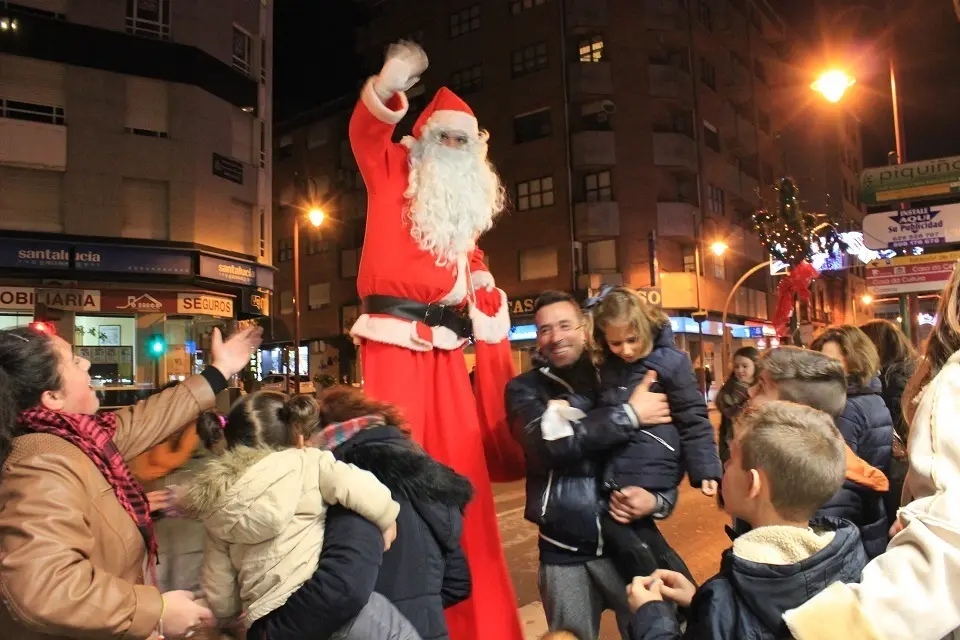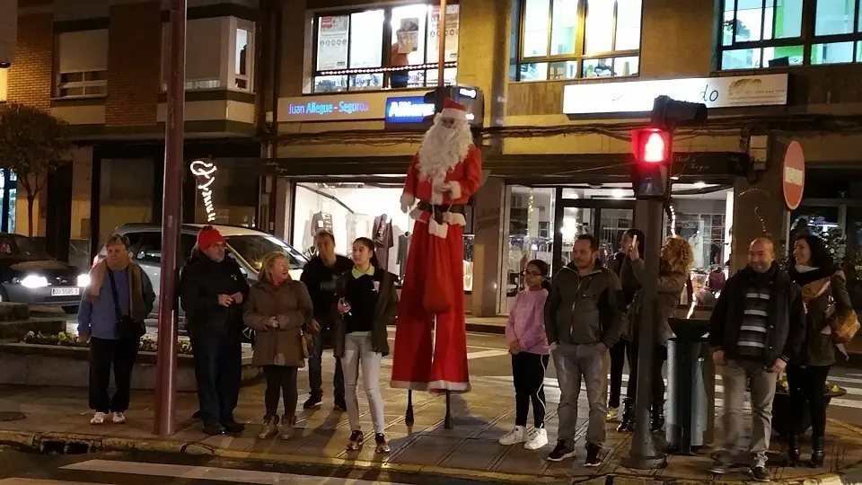 Todo esto amenizado por música navideña y por un Papa Noel....muy alto, cortesía de Centro Comercial Aberto O Barco. Sobre zancos ha estado paseando Santa Claus por las calles de O Barco, repartiendo caramelos y gritando oh, oh, oh con su enorme barriga mientras los más pequeños miraban asombrados el sorprendente estirón que ha pegado el hombre vestido de rojo...con la edad que tiene....