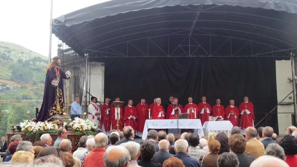 La misa, a la que respetó la lluvia, estuvo presidida por el obispo de Astorga, Juan Antonio Menéndez.