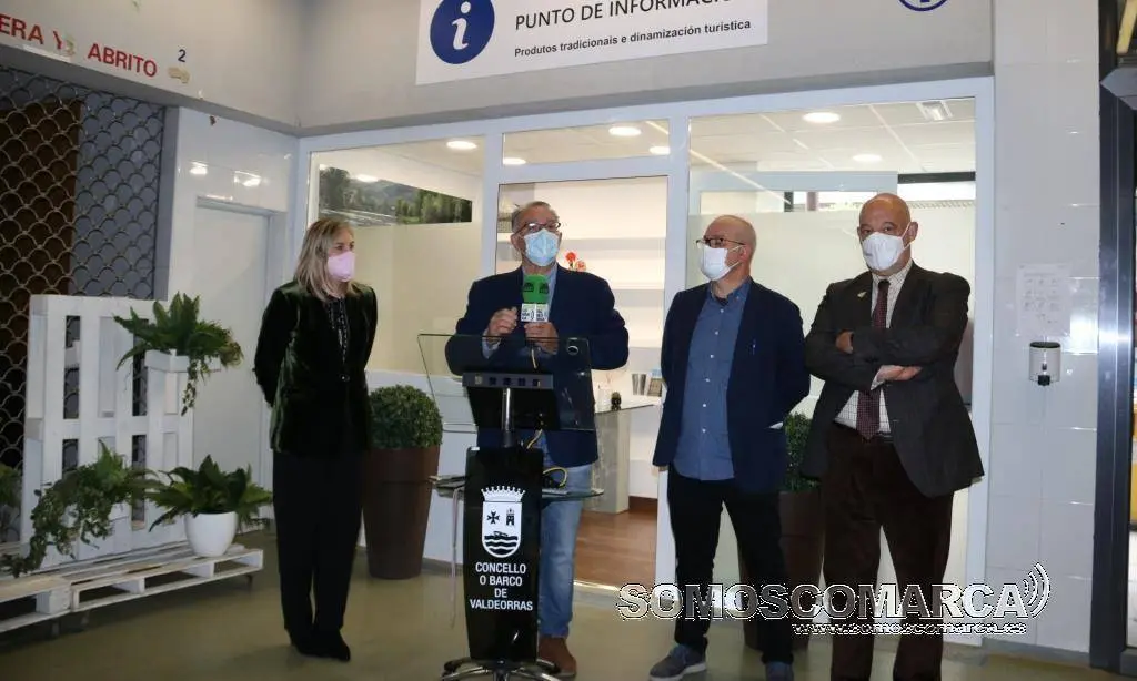 La oficina de información sobre productos tradicionales y dinamización turística ya es una realidad en O Barco. Este martes, 27 de abril, este punto ubicado en la plaza de abastos del concello ha sido inaugurado con la presencia de la nueva gerente del Inorde, Emma González; el alcalde, Alfredo García; el gerente del Eixo Atlántico, Xoán Vázques y el concelleiro de comercio y turismo, Eladio Santos.
