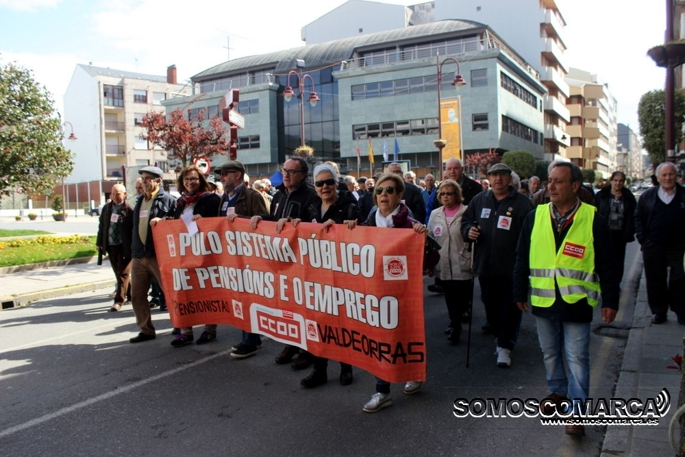 El Colectivo de Pensionistas de Valdeorras salio este domingo -junto a CC.OO y otros colectivos sociales- a manifestarse por las calles de O Barco con el objetivo de lograr una mejora de las pensiones acorde con el IPC (Índice de precios al consumo).