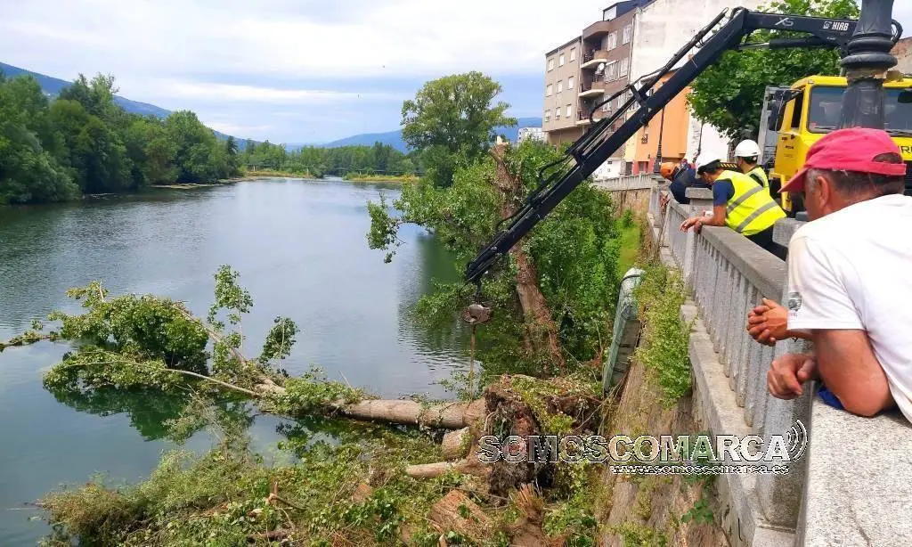 Na mañá deste venres, 2 de xuño retirábanse os chopos que caeran ao río Sil o pasado 23 de xuño no lugar do Porto da Barca, preto da Praza Maior do Barco. A acción anunciada polo alcalde do Barco o pasado luns a Somos Comarca levouse a cabo en tempo e prazo. Unha grúa sacou as árbores do leito do río polo que o acceso ao casco vello quedou cortado desde primeira hora da mañá. As grandes dimensións das árbores, o pouco enraizamento «como se veu cando as retiraban» e o terreo pouco consistente foi a causante do seu derrube.