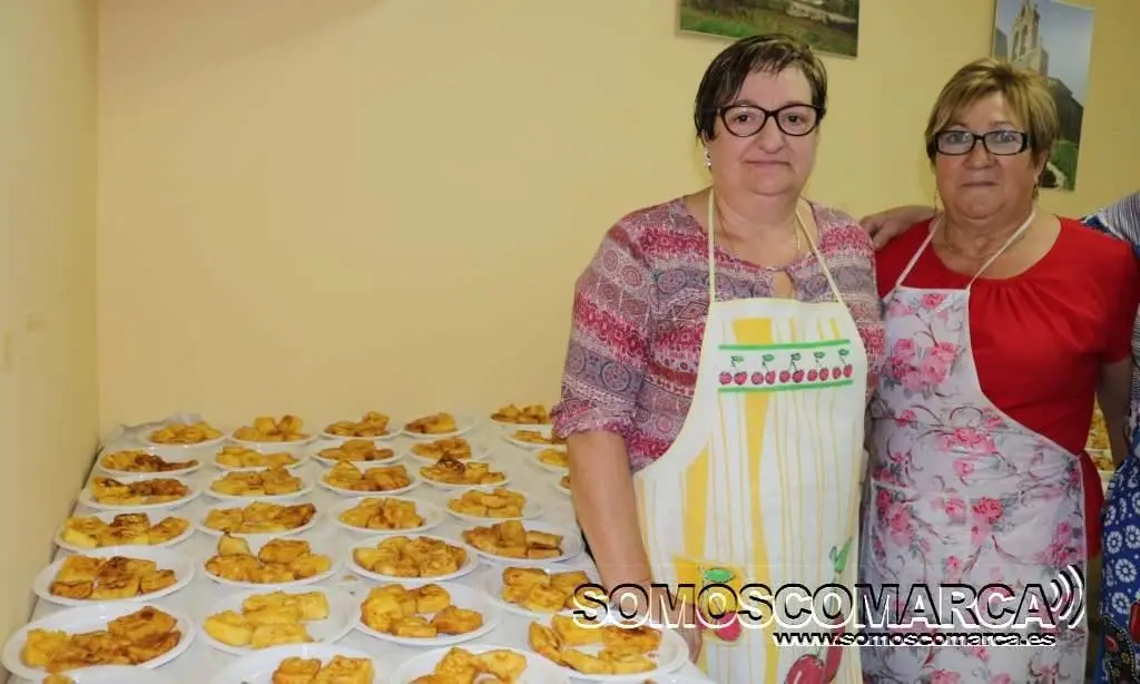 Tortillas, con pemento e sen pemento, con cebola ou sen ela. Empanadas de maravallas, carne ou atún chourizos, xabarín, por suposto, pan feito de maneira totalmente artesán no forno que teñen detrás das antigas escolas, sede do colectivo. Pero, sen dúbida onde cada unha aporta o mellor de si mesmas é nos doces; tortas de iogur, de queixo, de noces, de chocolate, améndoas, bica, biscoito, galletas de manteiga, orellas “ojuelas”, como nos dicía Sinda . De leite frito fixéronse 24 litros que dan para 600 racións, as encargadas foron Rita, Ana e Chus, que estiveron dende as 8.00 ate as 15:30 horas, sen parar.