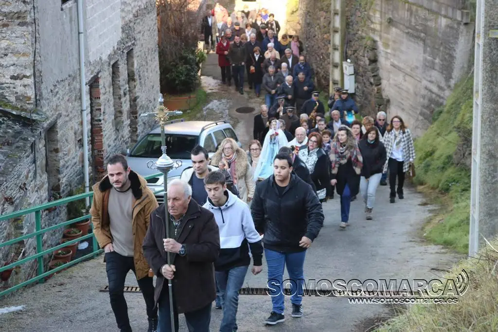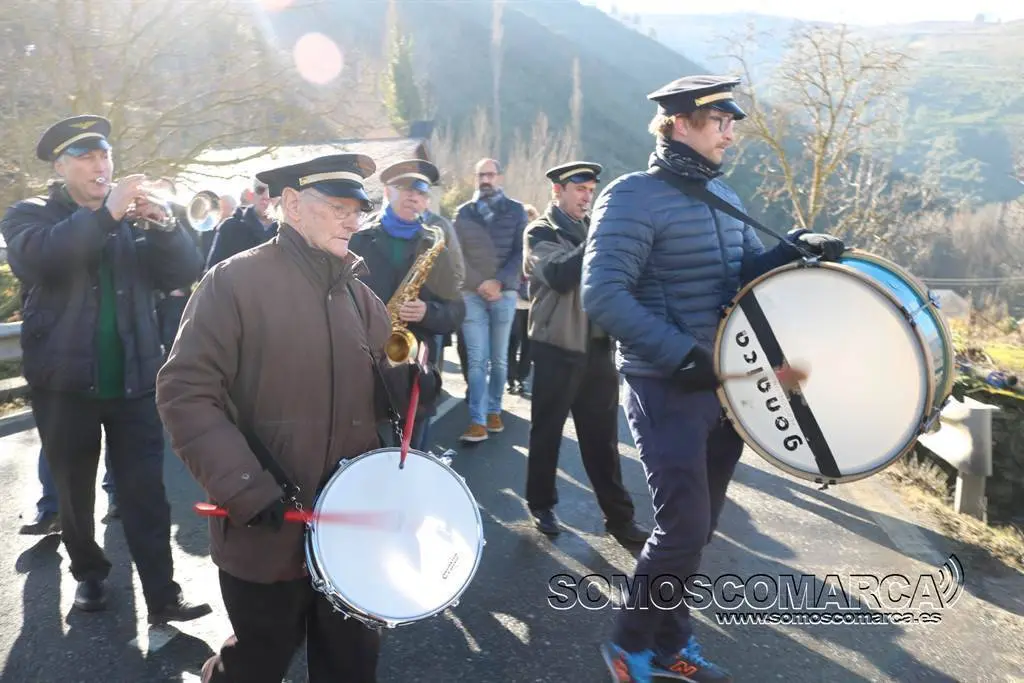 En las dos localidad, a las 13.00 horas daba comienzo la procesión. En el caso de Coedo, la procesión partía de la capilla, los hombres portaban la imagen de san Antón y las mujeres la de la virgen. El recorrido por las estrechas calles de Coedo estuvo acompañado por la música de una charanga, en la que pudimos ver al músico barquense Roo que no deja de hacer lo que más le gusta, tocar algún instrumento musical, en el caso de hoy fue el tambor.