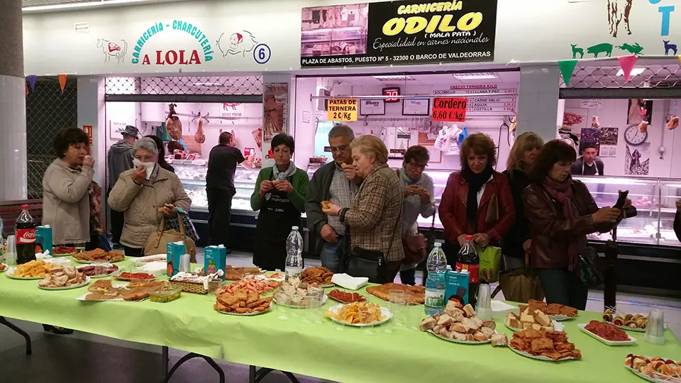 Amistad, comercio, pinchos y alegría se juntaron esta mañana en la Plaza de Abastos de O Barco. Debido a la campaña de la Xunta de Galicia, "Quere o teu mercado", el concello barquense organizó el Día del Praceiro. Así, entre las 12.00 y las 13.00 horas, todos los comerciantes de la plaza se unieron para ofrecer a los compradores y visitantes un rico y variado pincho.