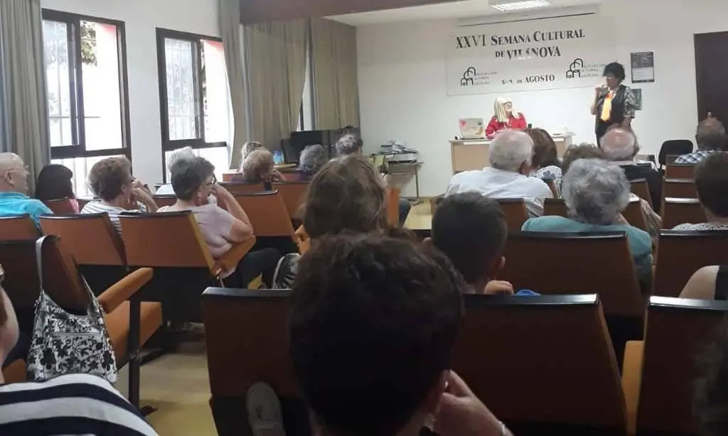 A presidenta da asociación Ángeles Pérez non faltou á cita coa Semana Cultural —reside en Sevilla—, que comezou o pasado 5 de agosto. A conferencia de Antonio Castro Voces e David Daniel Vázquez Álvarez inaugurou os actos. Presentaron o seu libro « Ultreya et Suseya por el Camino de Invierno», a novela histórica do Camiño. Castro Voces é un bo coñecido da Semana Cultural, é a sétima vez que participa tras estes 26 anos de andadura.