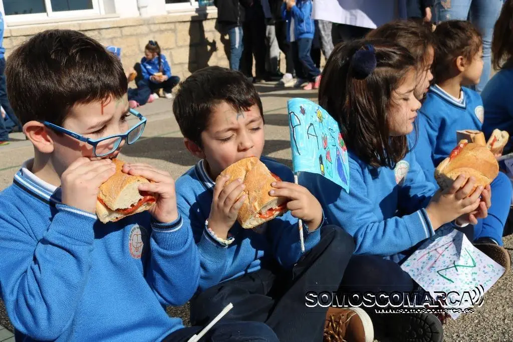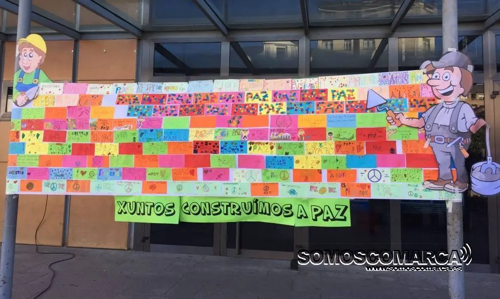 Papeis repletos de desexos de Paz tamén escribiron os nenos e nenas do Divina Pastora, cos que construiron despóis un muro “doado de derrubar”, que colocaron de diante do Concello do Barco. Un muro plagado de debuxos, textos e poemas, que di o mestre Aurelio Prada, “son reflexo da súa creatividade”. E por se a Paz non se da por aludida, convidárona a unha comida feita coa mellor receita de cociña, a que leva como ingredientes “a tolerancia, o respeto, o amor, o cariño e os mimos”. Pombas de papel e globos brancos soltados ao ceo, completaron a chamada deste colexio dende as rúas do Barco.