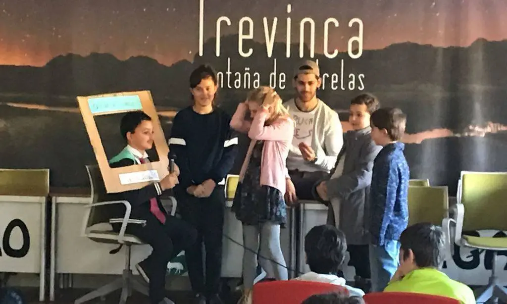 Os rapaces da Veiga nun momento da interpretación feita na aula de conferencias do Toural na Veiga