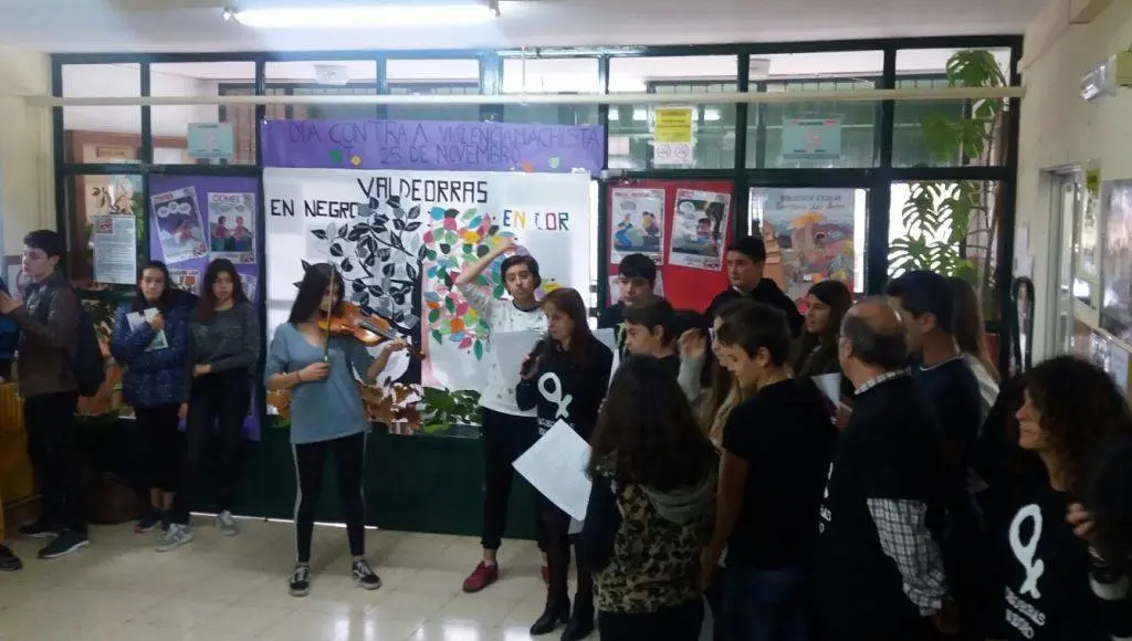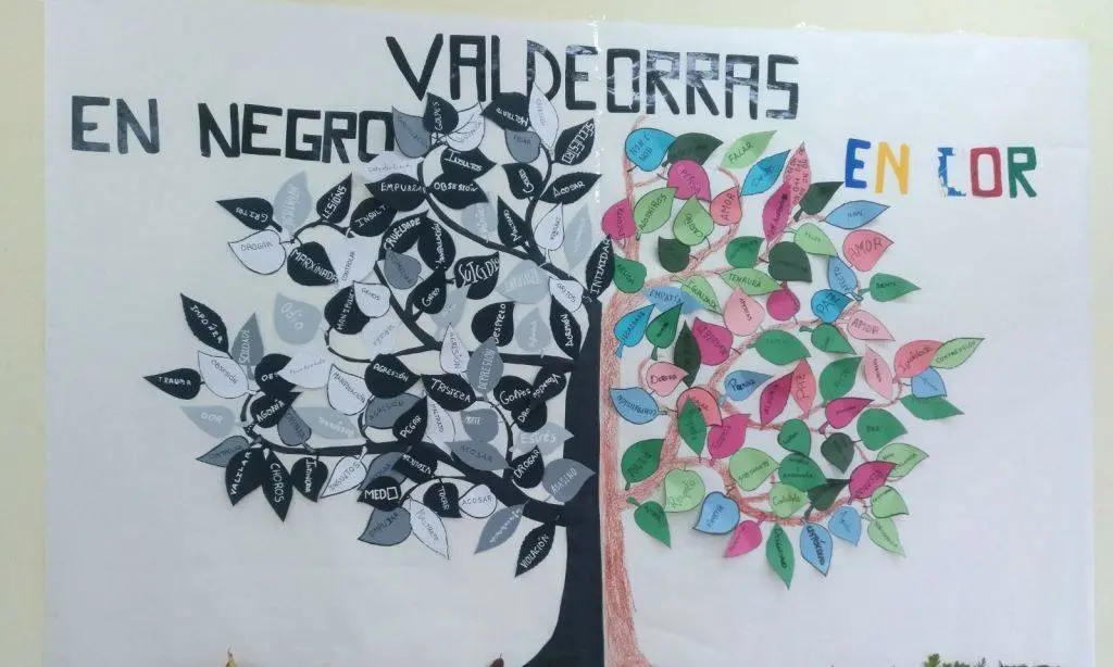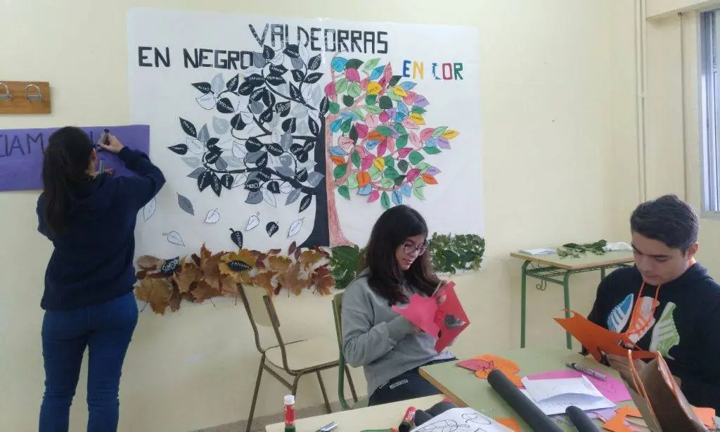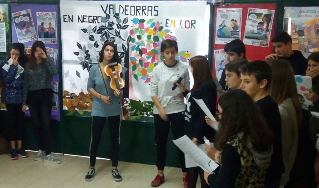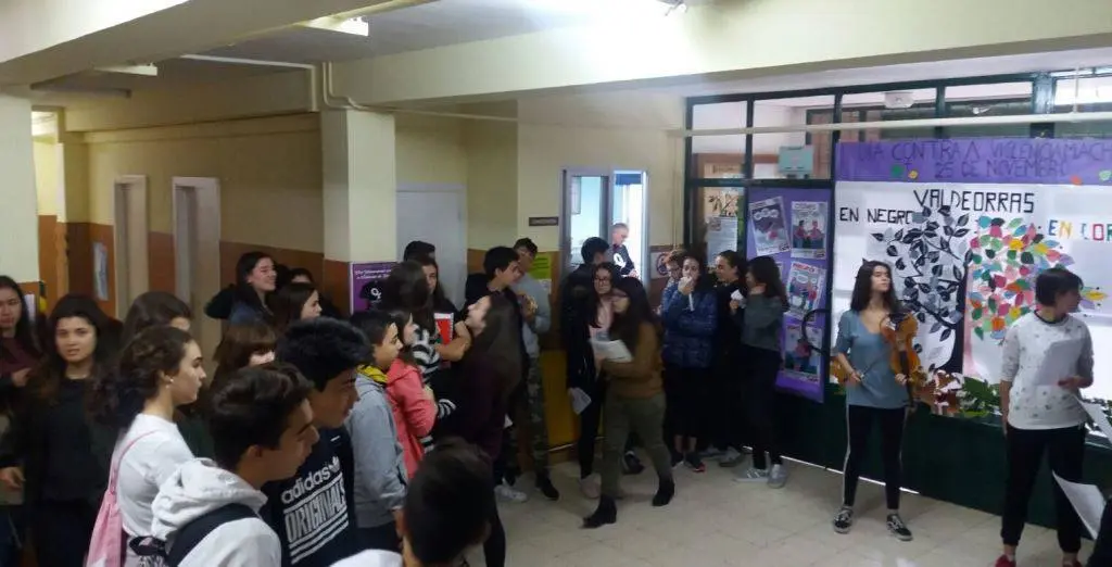Os rapaces de 2º a 4º da ESO do IES Cosme López da Rúa, confeccionaban o mural con forma de árbore Valdeorras en negro e en cor, con termos relacionados coa violencia en cores apagadas e termos relacionados coa non violencia en cores rechamantes. Despois procedíase á lectura do manifesto en contra da violencia feito polos maiores de 1º de Bacharelato, e se acompañaba co son do violín de Silvia, alumna do centro.