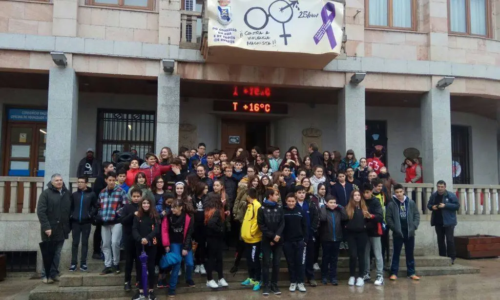 Ás 12:00h procedíase á lectura de manifestos en contra da violencia machista na maioría dos centros de traballo, prazas dos concellos, administracións públicas, colexios e institutos das diferentes vilas.
