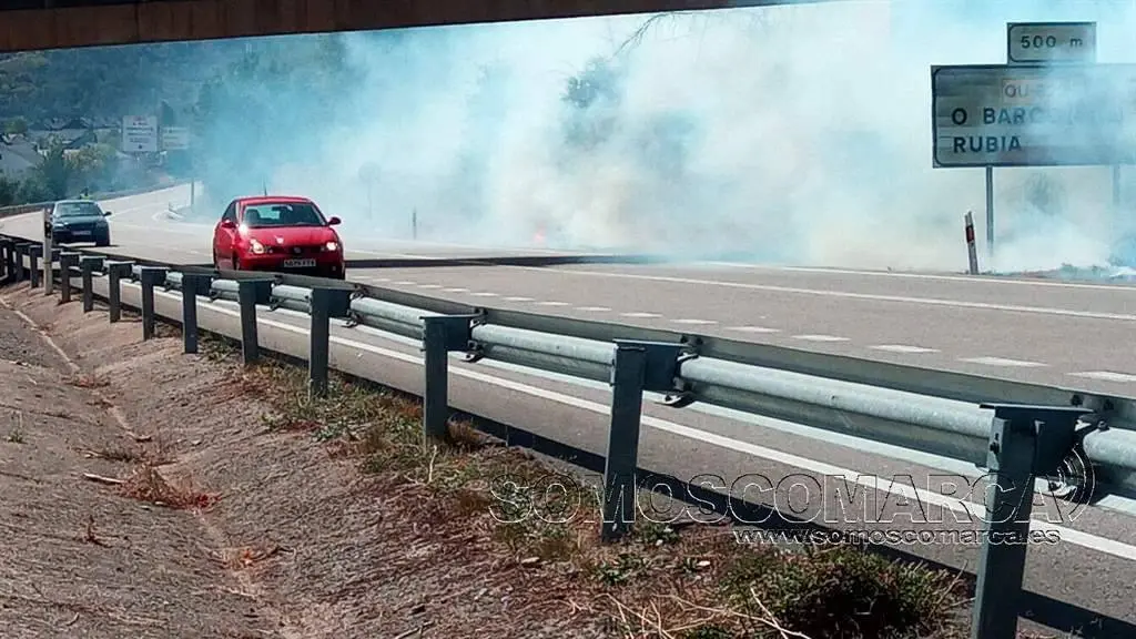 El incendio se sitúó entre la N-120 y la carretera de Rubiá en el término municipal de O Barco y cortó uno de los carriles de la carretera nacional