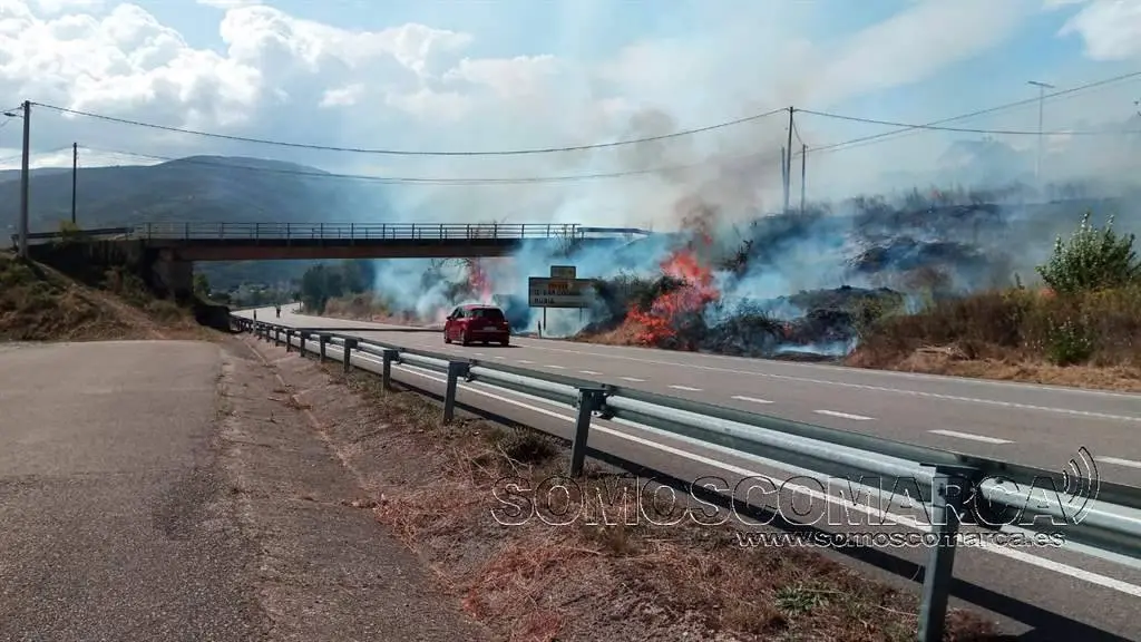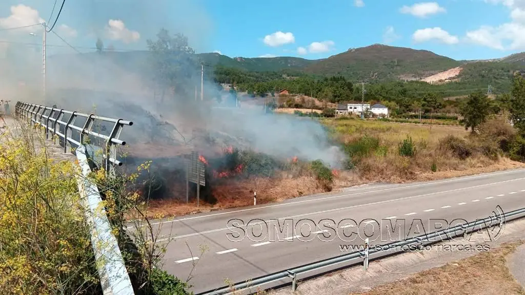 A las 13:24 horas de este sábado, 14 de septiembre, se producía en O Barco un incendio entre la N-120 y la carretera de Rubiá, a la altura del Tanatorio cuyas llegaron a uno de los carriles de la N-120. El suceso comenzó en un punto próximo al P.K. 453,00.