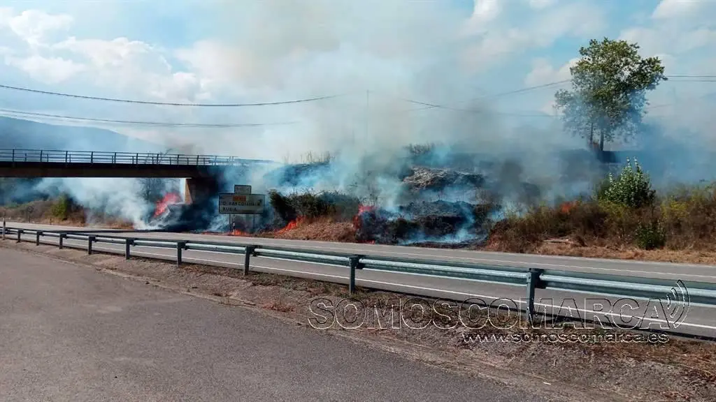 Las llamasllegaron a alcanzar un carril de la N-120, por lo que se recomendó prudencia y no hacer uso de esta carretera si no es estrictamente necesario.