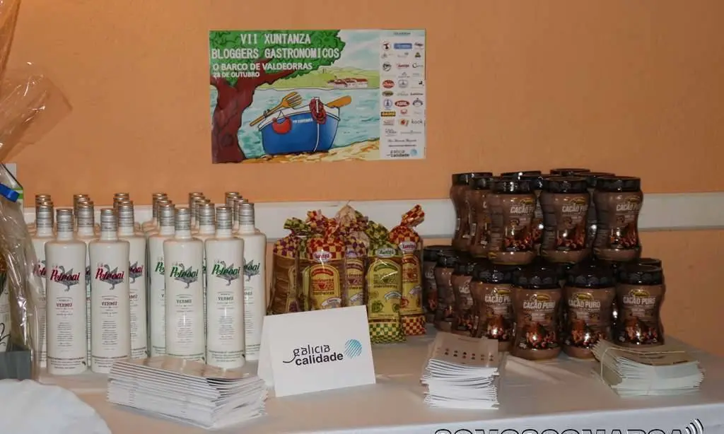 Los productos con los que se elaboró el menú fueron gentileza de empresas como Pesca de Rias, I.X.P Tenreira Galega, Conservas O Submarino, Vinos Celeiro, Galletas da Veiga, Lácteos Anzuxao, Bicas Manzaneda, Exclusivas Morales, Vermú Petroni, además de las bodegas de la D.O. Valdeorras: A Coroa, Ruchel, Roandi y Godeval. En la sobremesa se sortearon lotes de productos aportados por Embutidos y Salazones García Marcos, Consello Regulador de Licores Tradicionais de Galicia, Gadis, O Rego Natura, Queixos Feijóo de Celanova, Embutidos Lalinense, Comercio Xusto, Naiciña Castaña de Galicia, Kook Shop y Rosti Mepal, Galicia Calidade Lecer, también estuches de vino delas bodegas valdeorresas Pinguela, Alan de Val, Roandi y Berna.