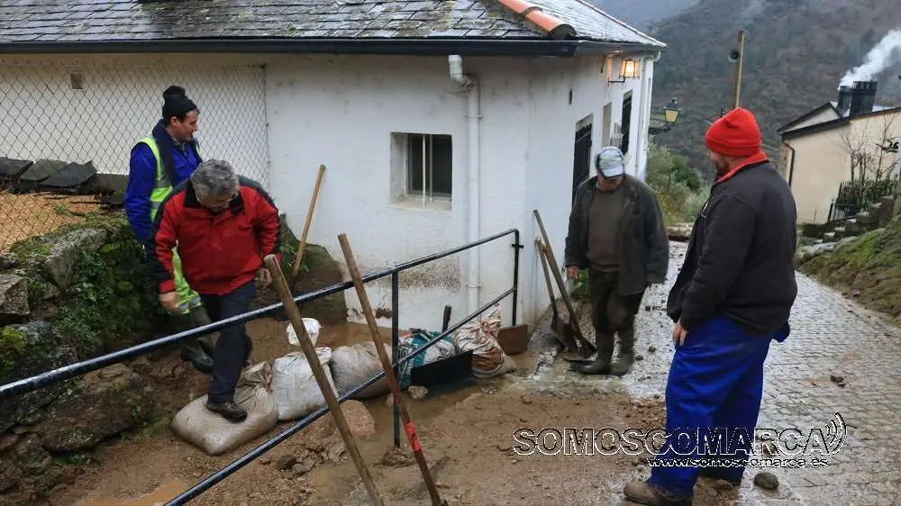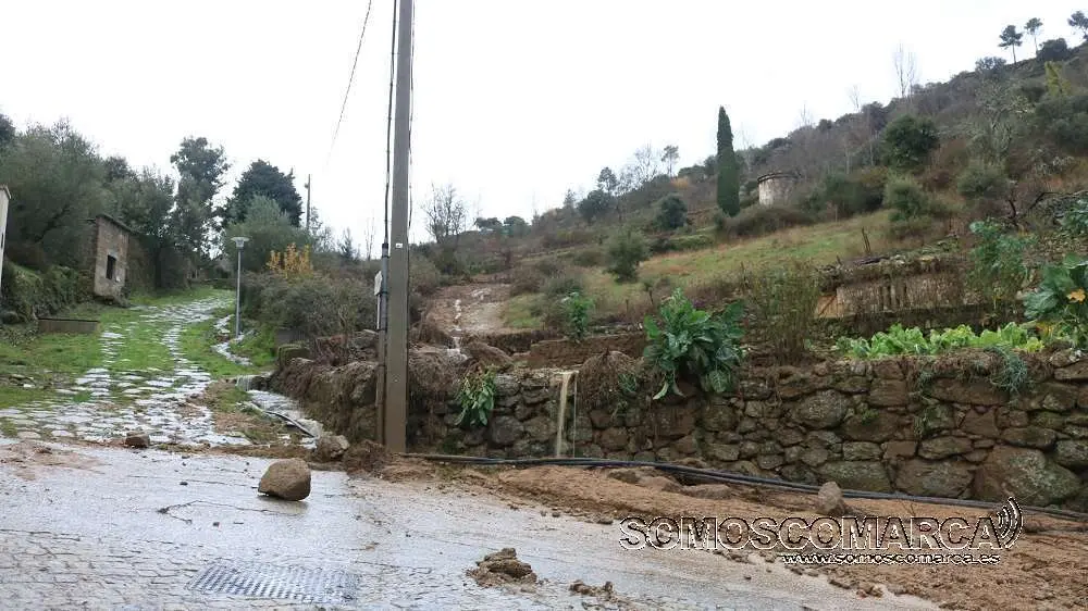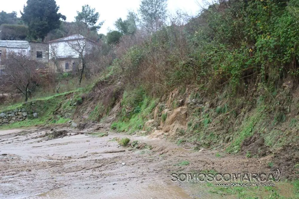 Las intensas precipitaciones provocaron una mañana complicada en el núcleo de As Ermitas, en el Concello de O Bolo, ya que parte de una tajea se desprendió provocando que el lodo bajara por las calles de la aldea.