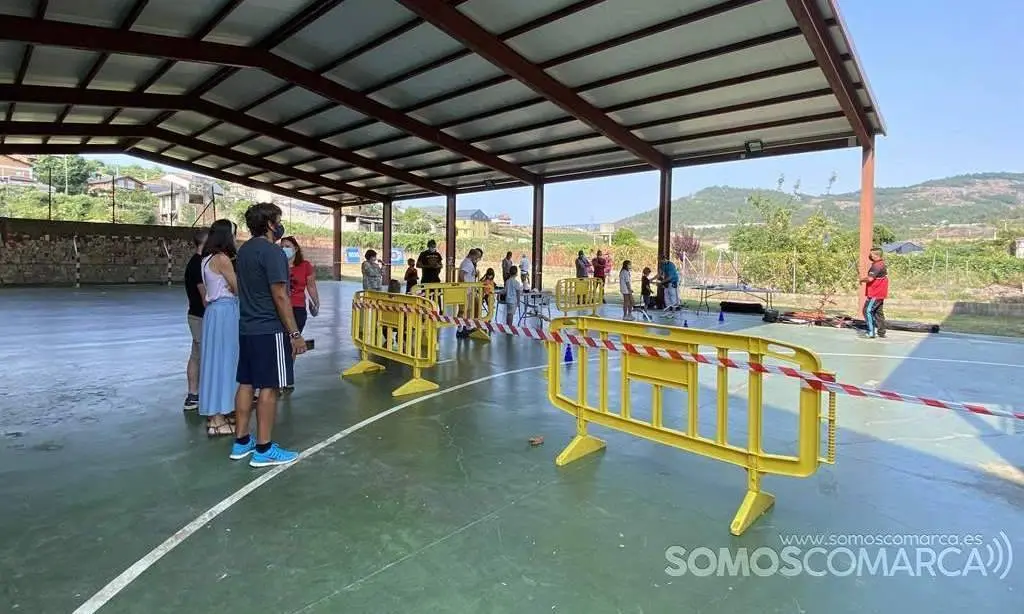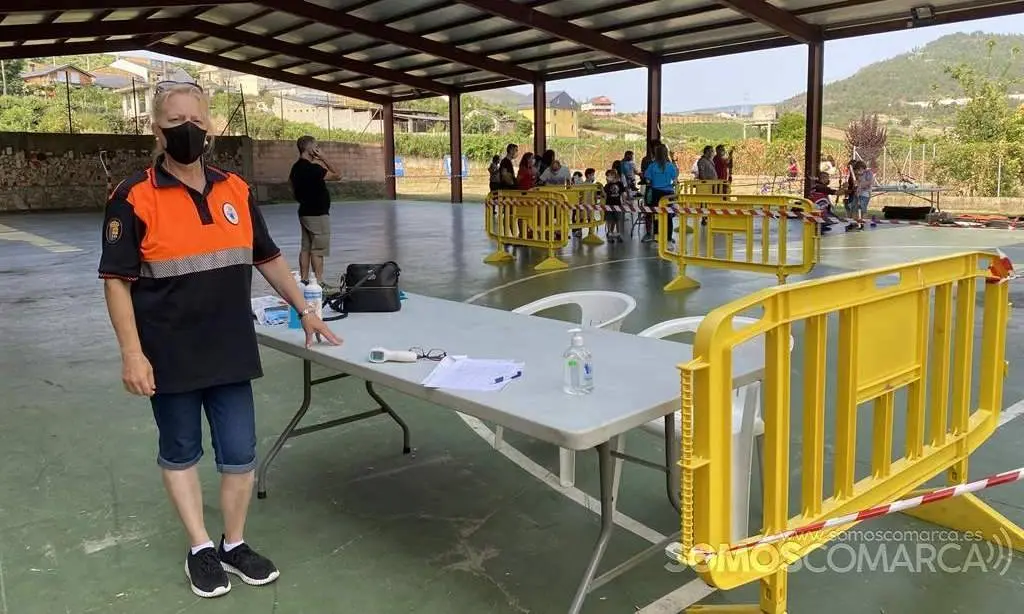 Antes de pasar al recinto, un miembro de Protección Civil de Petín aplicaba el el protocolo covid. Se tomaba la temperatura, se desinfectaban las manos con gel hidroalcohólico y se registraban los datos de cada persona que accedía al recinto,