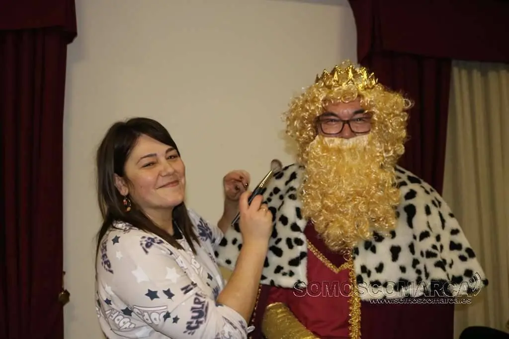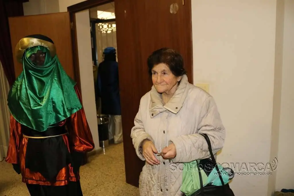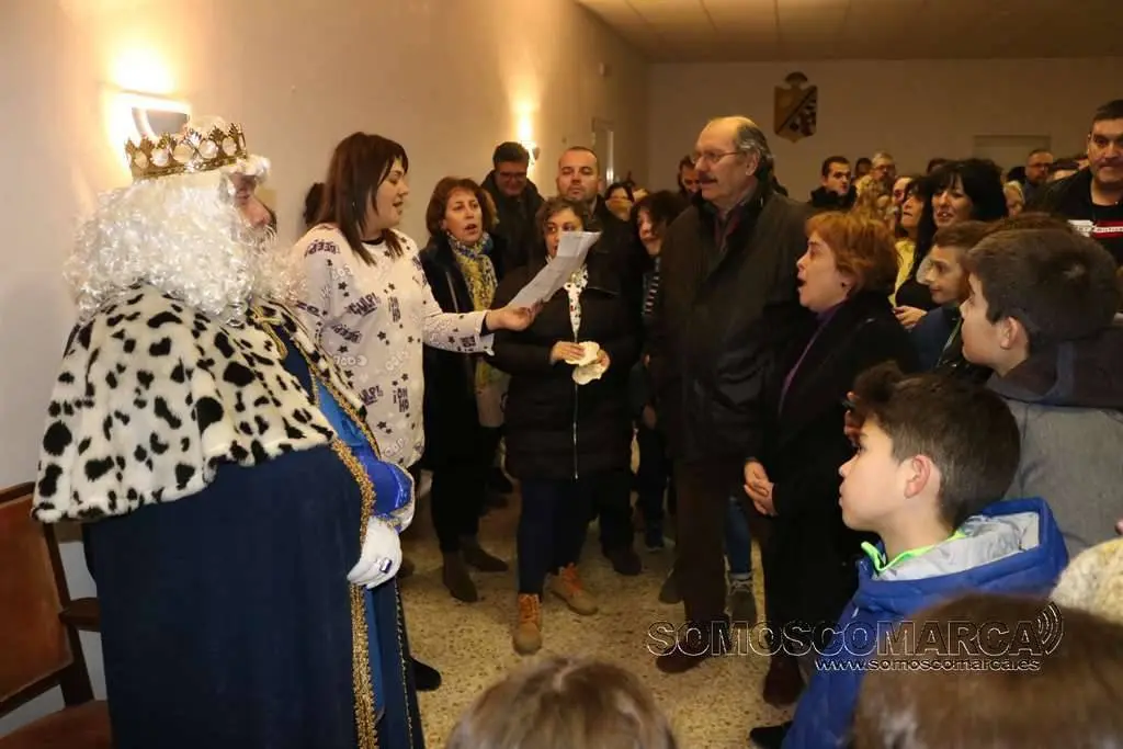 Fotografías dos nenos e, non tan nenos cos Magos de Oriente e até un agasallo para a alcaldesa de Petín, Raquel María Bautista que lle foi entregado por Melchor .
