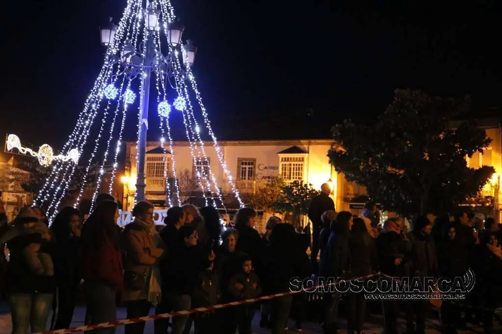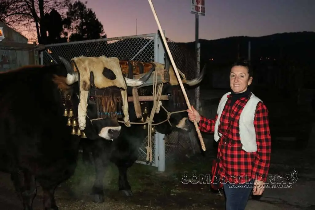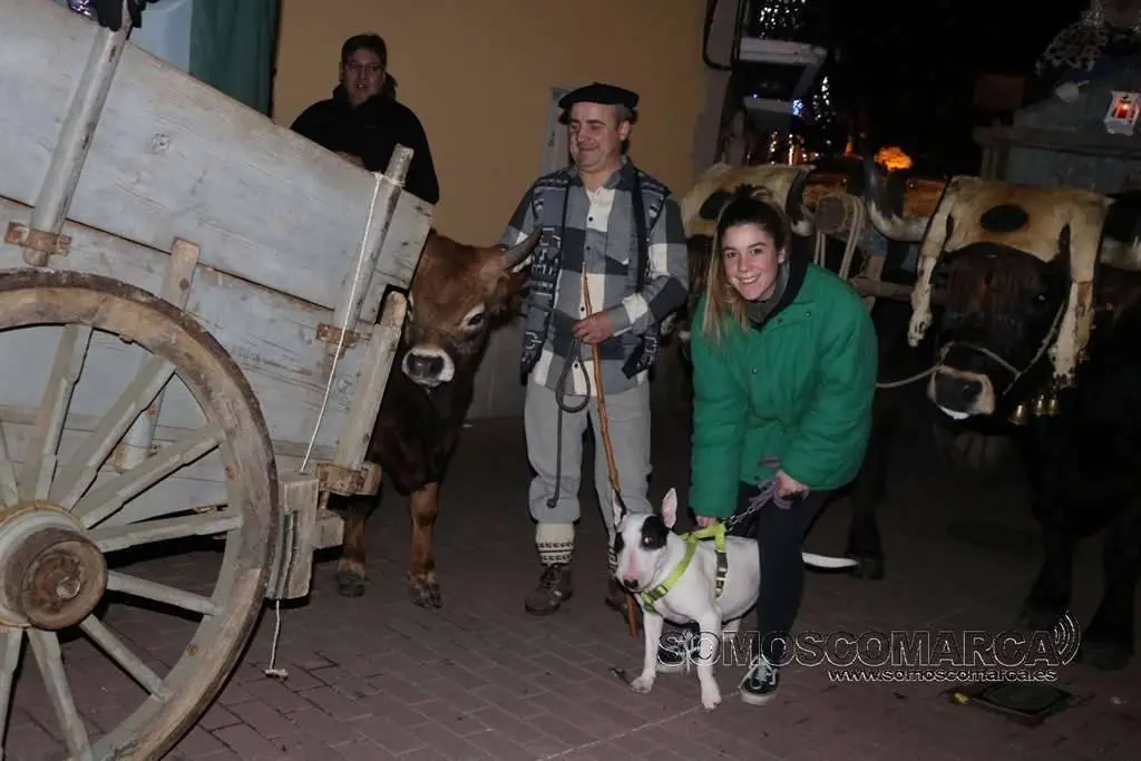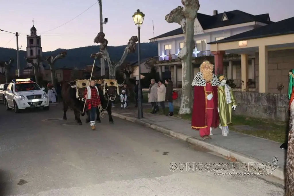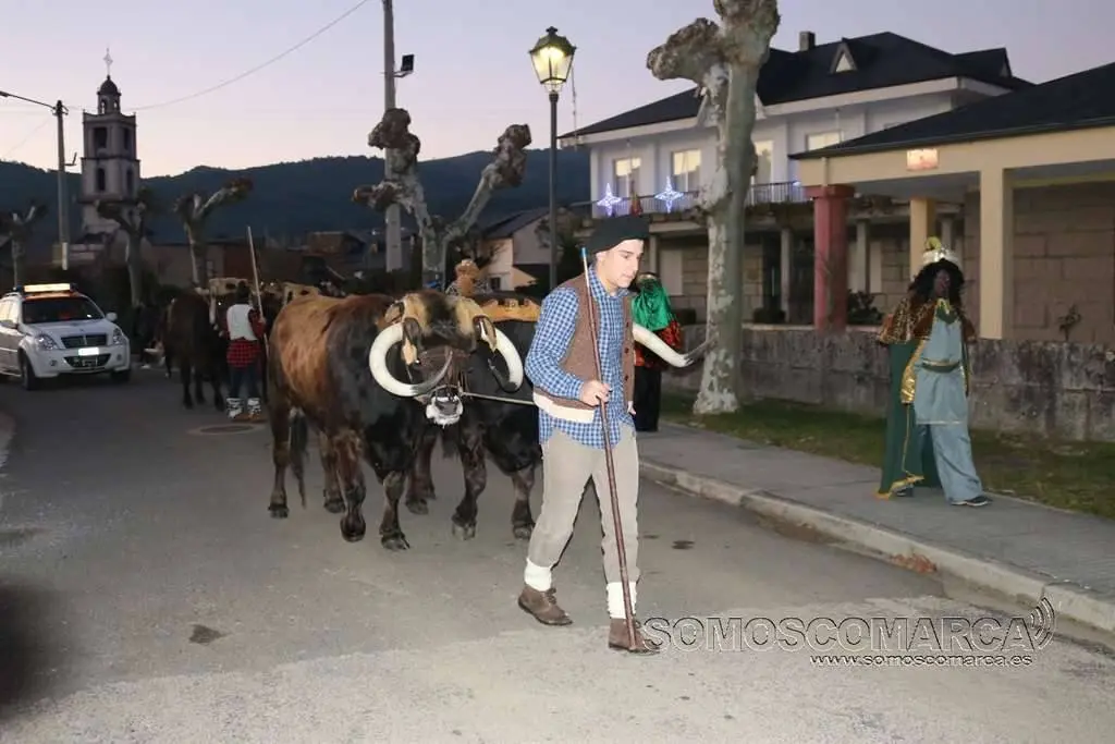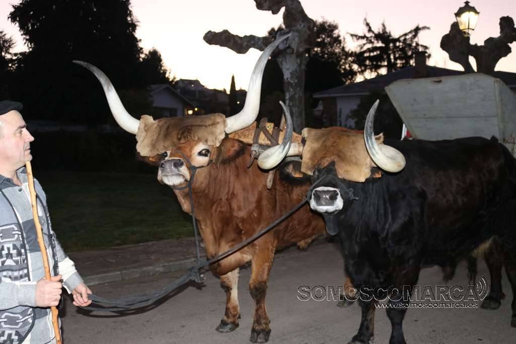 Os bois da gandería de Mario Nogueira foron os encargados de tirar polos tres carros que levaron a Gaspar, Melchor e Baltasar até o Teleclub onde eran recibidos por multitude de veciños e visitantes.