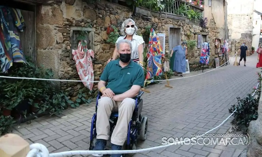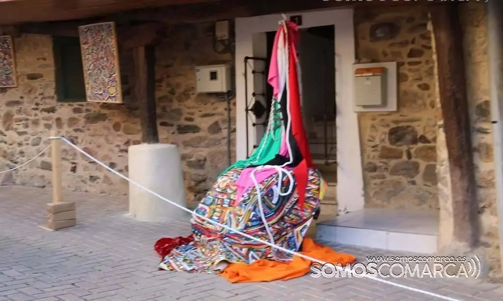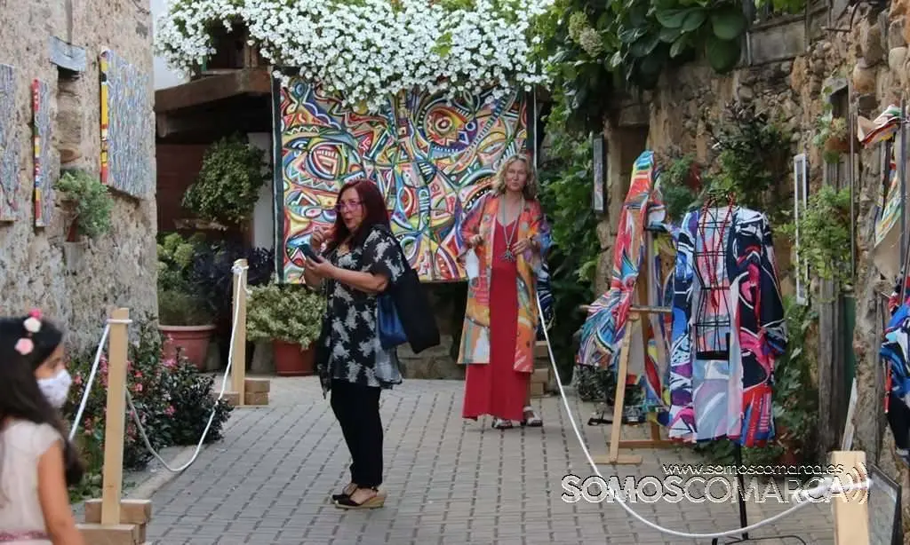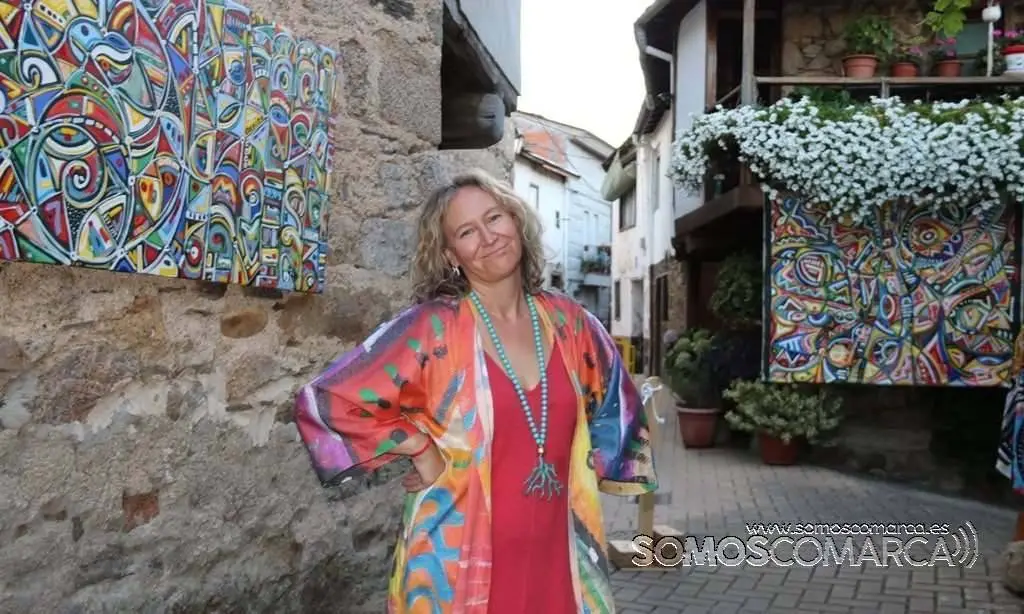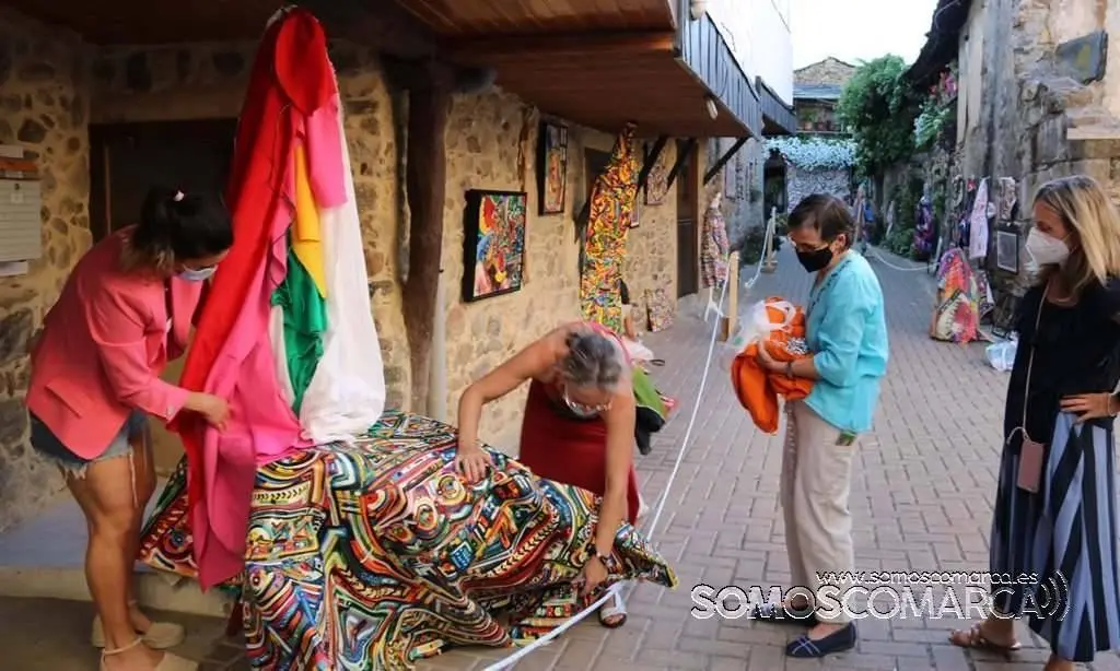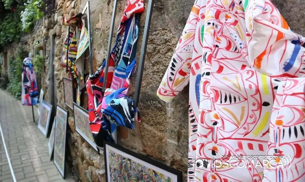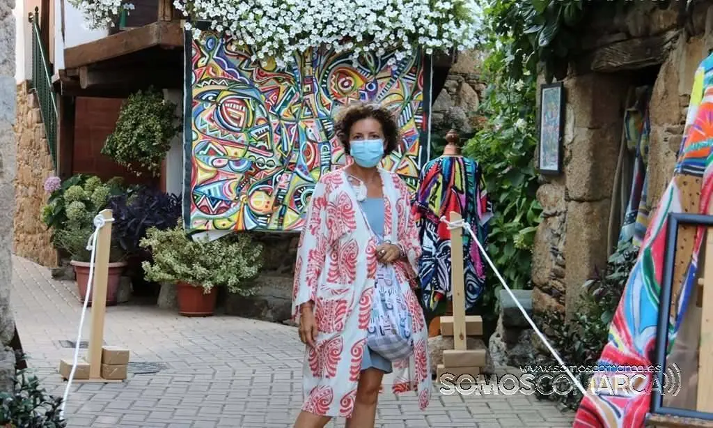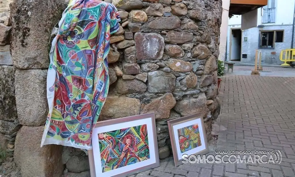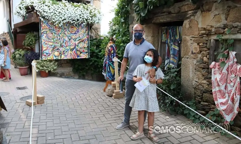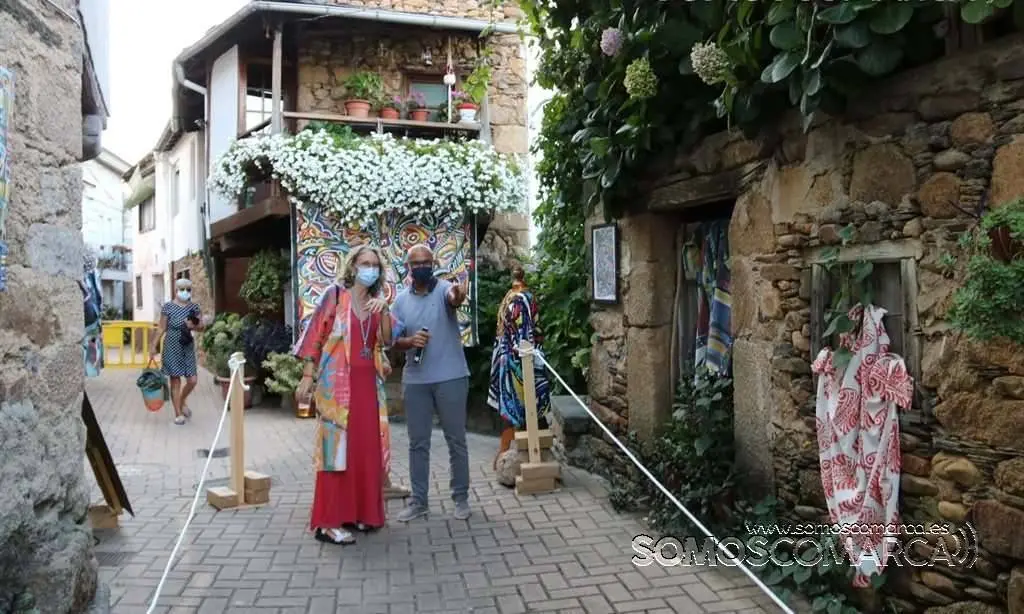 No percorrido pola exposición que fixemos da man de David Esmerodes atopamos a súa dona, Carina —unha das musas desta mostra que este ano presenta coma novidade teas co estampado da súa obra en quimonos ou chaquetas—. As prendas están confeccionadas por modistas da comarca a quen Carina lles agradece profundamente o traballo realizado.