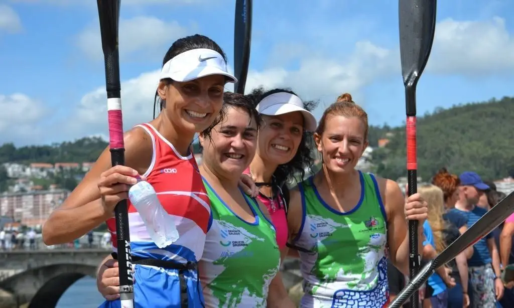 [df-caption title="El cuarteto de veteranas alzando los brazos al ganar la prueba." url="http://somoscomarca.es/wp-content/uploads/2017/08/somoscomarca_pontevedra_piraguas_princesa_asturias_2017_08_15-2.jpg"]