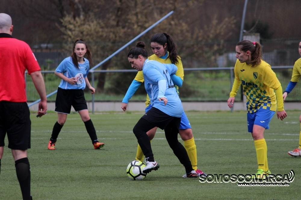 Tras el tanto el dominio del balón y las pocas ocasiones que había en O Aguillón eran provocadas por las locales, quienes supieron aprovechar la superioridad en velocidad de Isa por la banda izquierda para llegar en multitud de veces a la meta defendida por Alba Romero. Eso lo vieron también las barbanzanas, quienes adelantaron muy bien las líneas para provocar el fuera de juego de las locales.